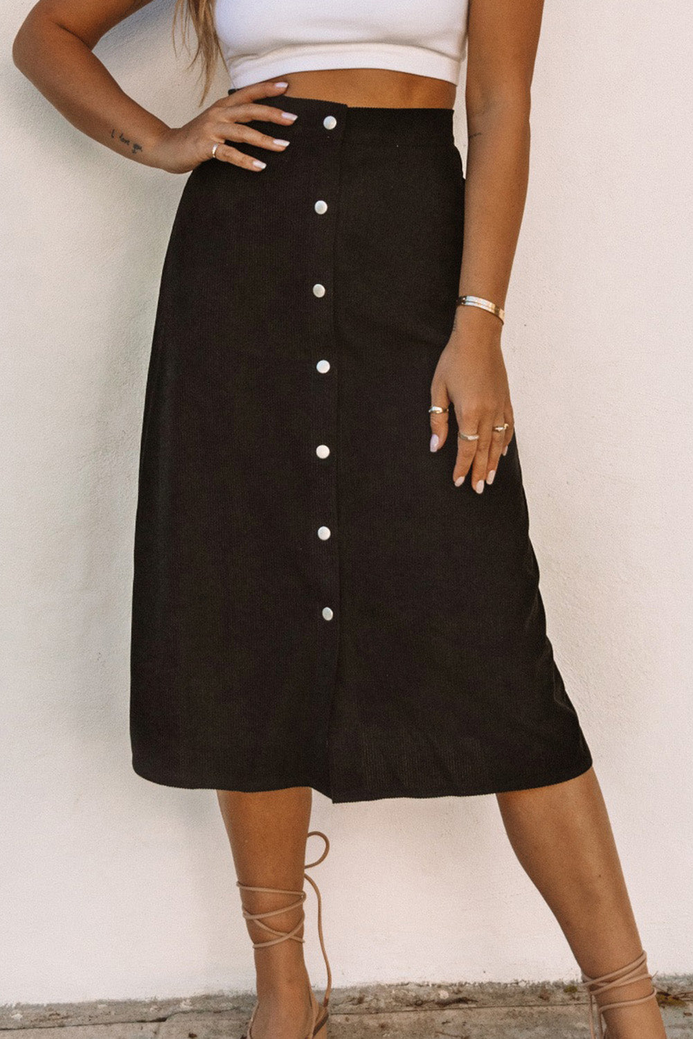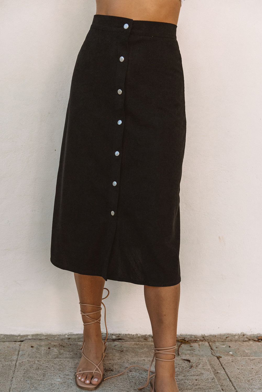 - Esta falda midi es clásica y elegante por el tejido de pana.