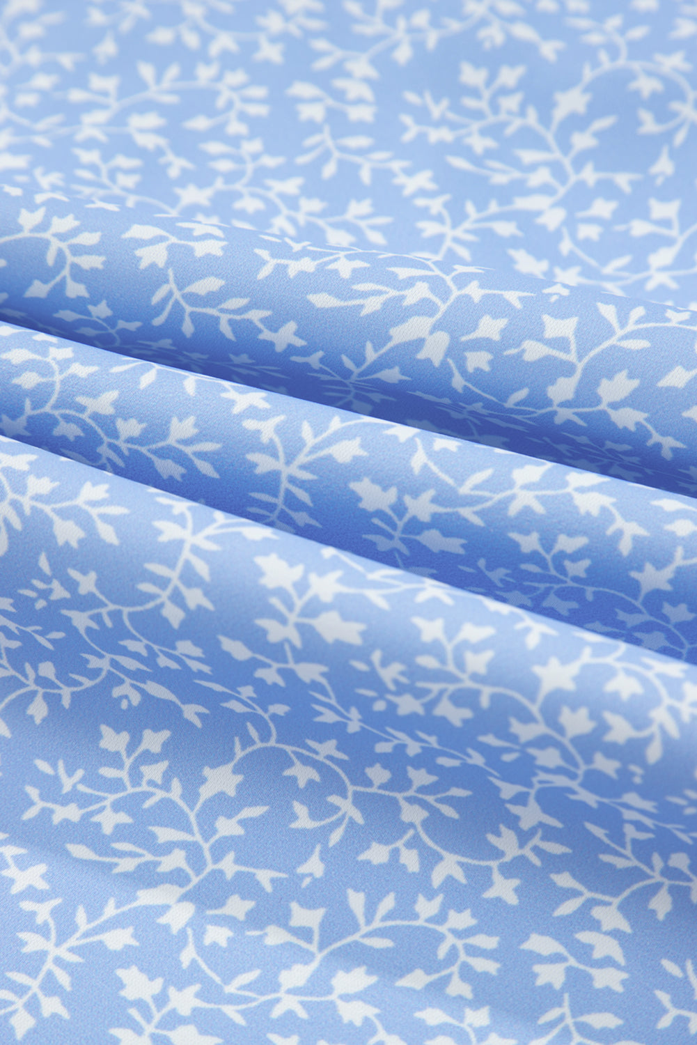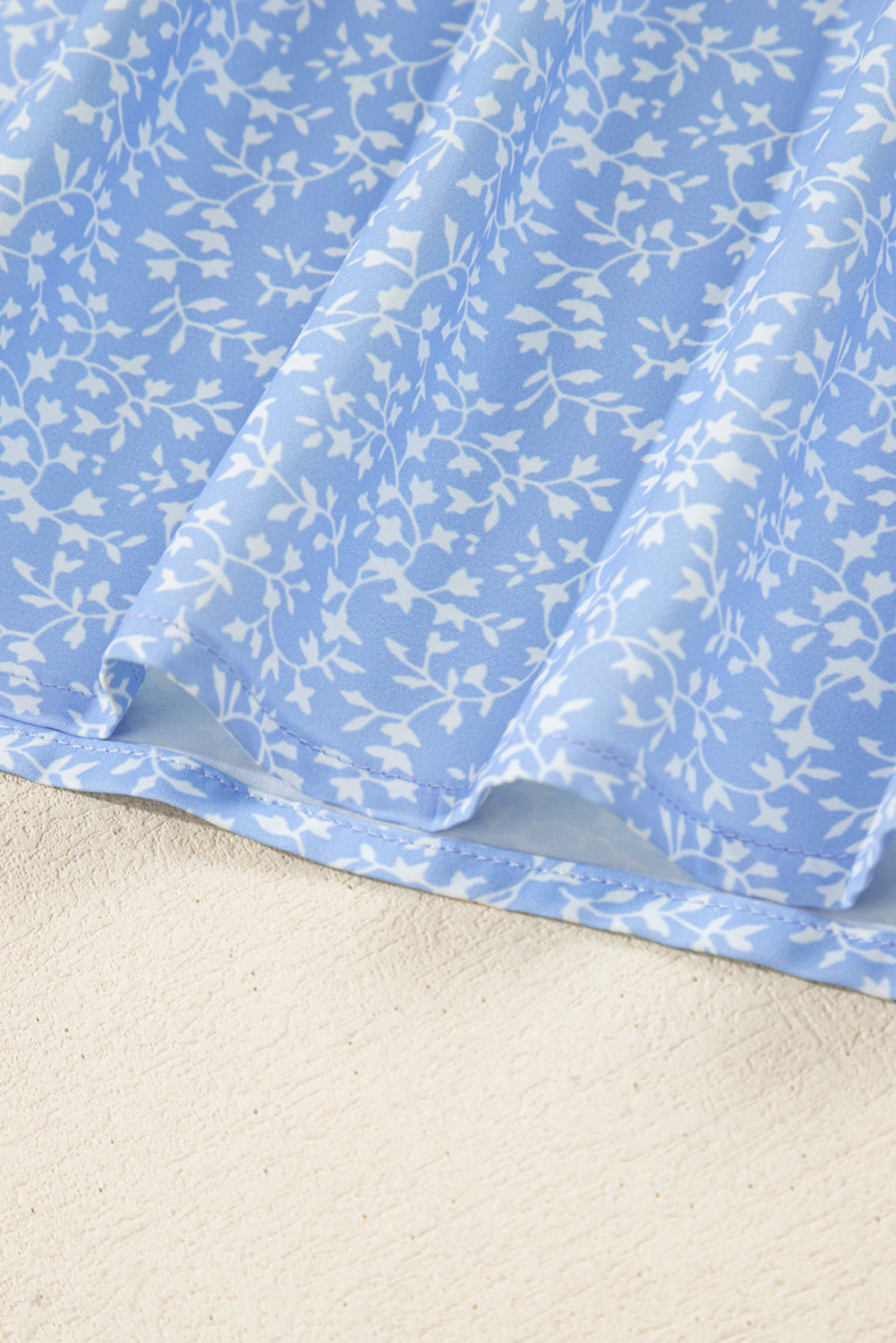 Sky Blue Floral Embroidered Puff Sleeve Notched V Neck Blouse