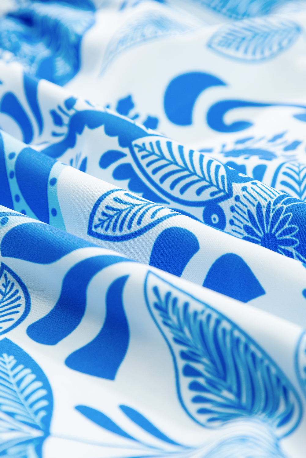 Sky Blue Retro Floral Print Drawstring Waist Ruffled Mini Dress
