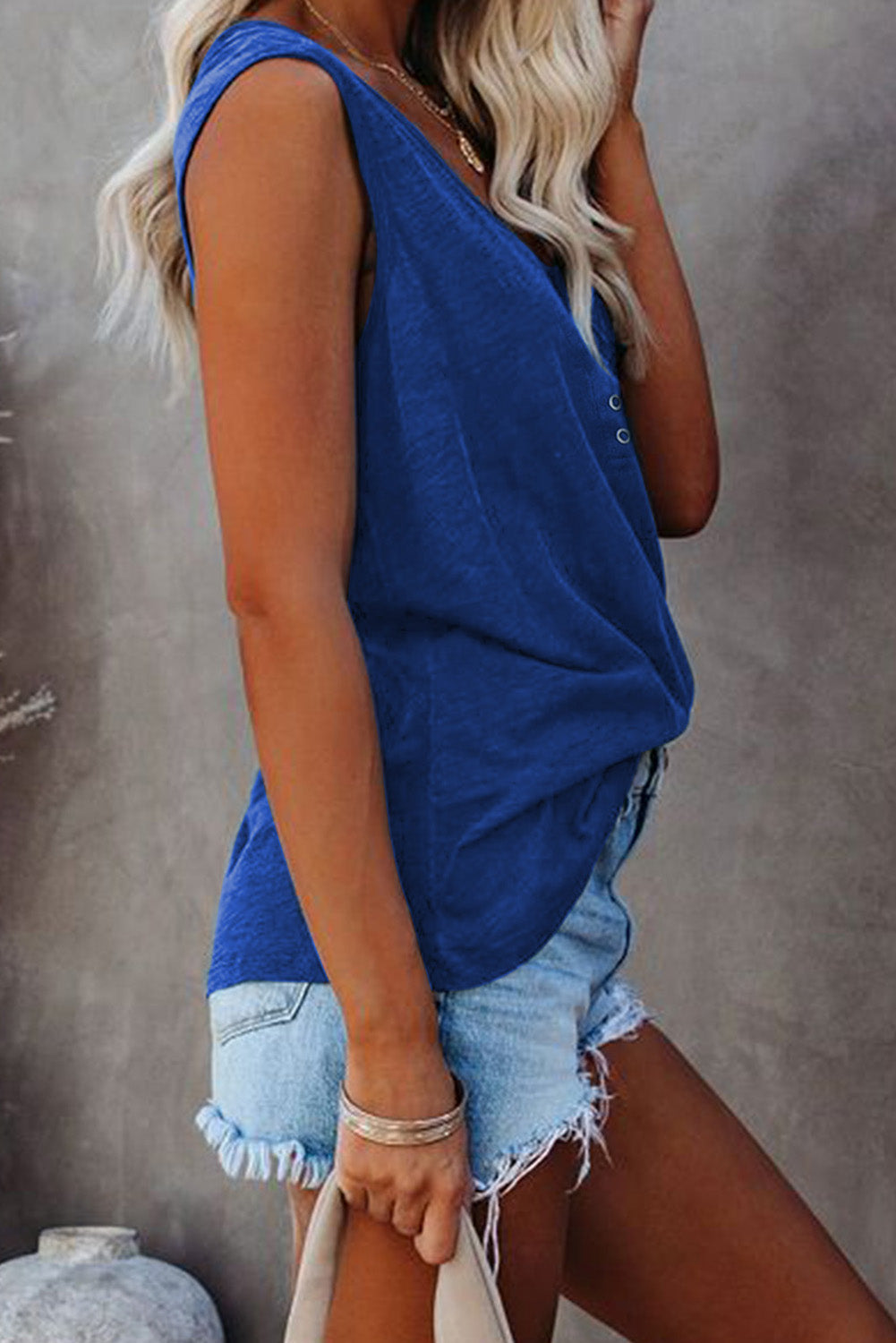 Camiseta sin mangas con cuello redondo y botones a presión con bolsillo