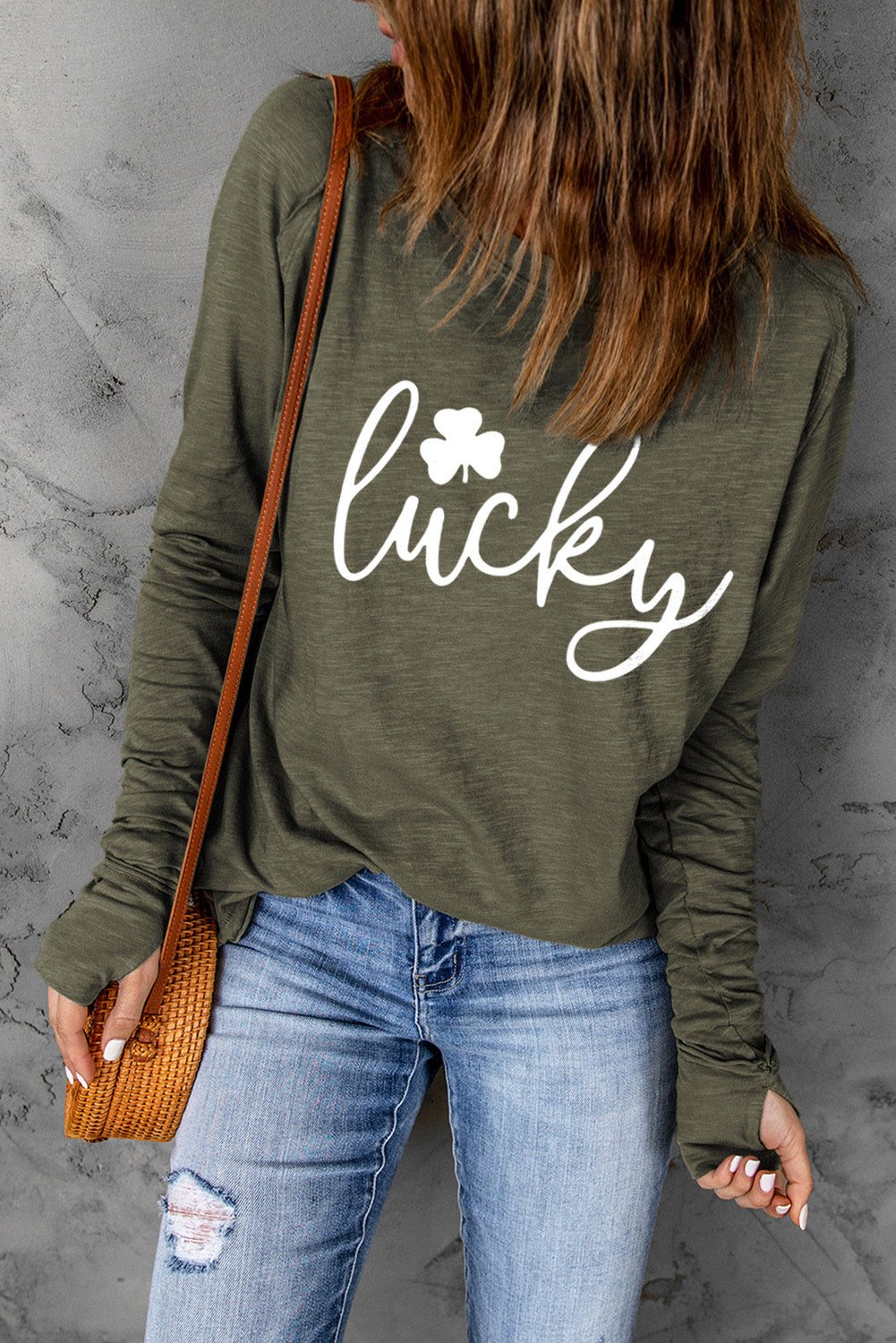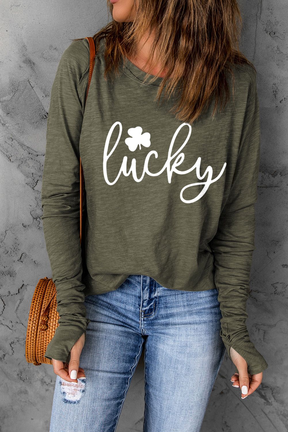 - Destacado con escote redondo, mangas largas, orificios para los pulgares, color liso y ajuste holgado.