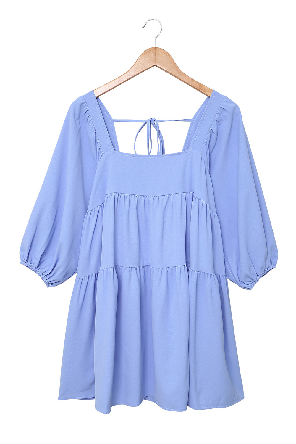 - Destacado con cuello cuadrado, manga de burbuja, espalda descubierta y largo mini.