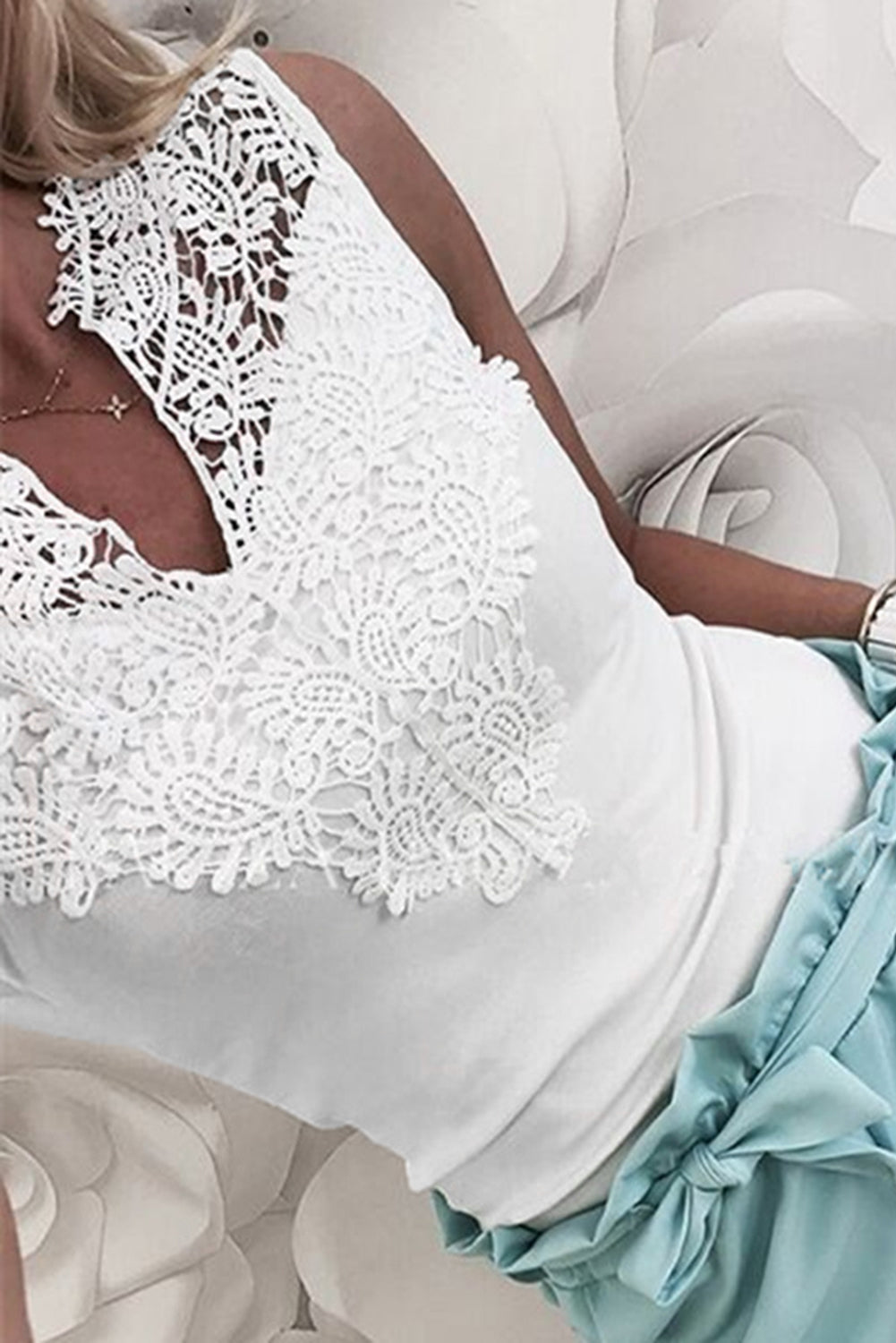 •El diseño de encaje de ganchillo dota a esta camiseta sin mangas con una gran gracia y sensualidad.