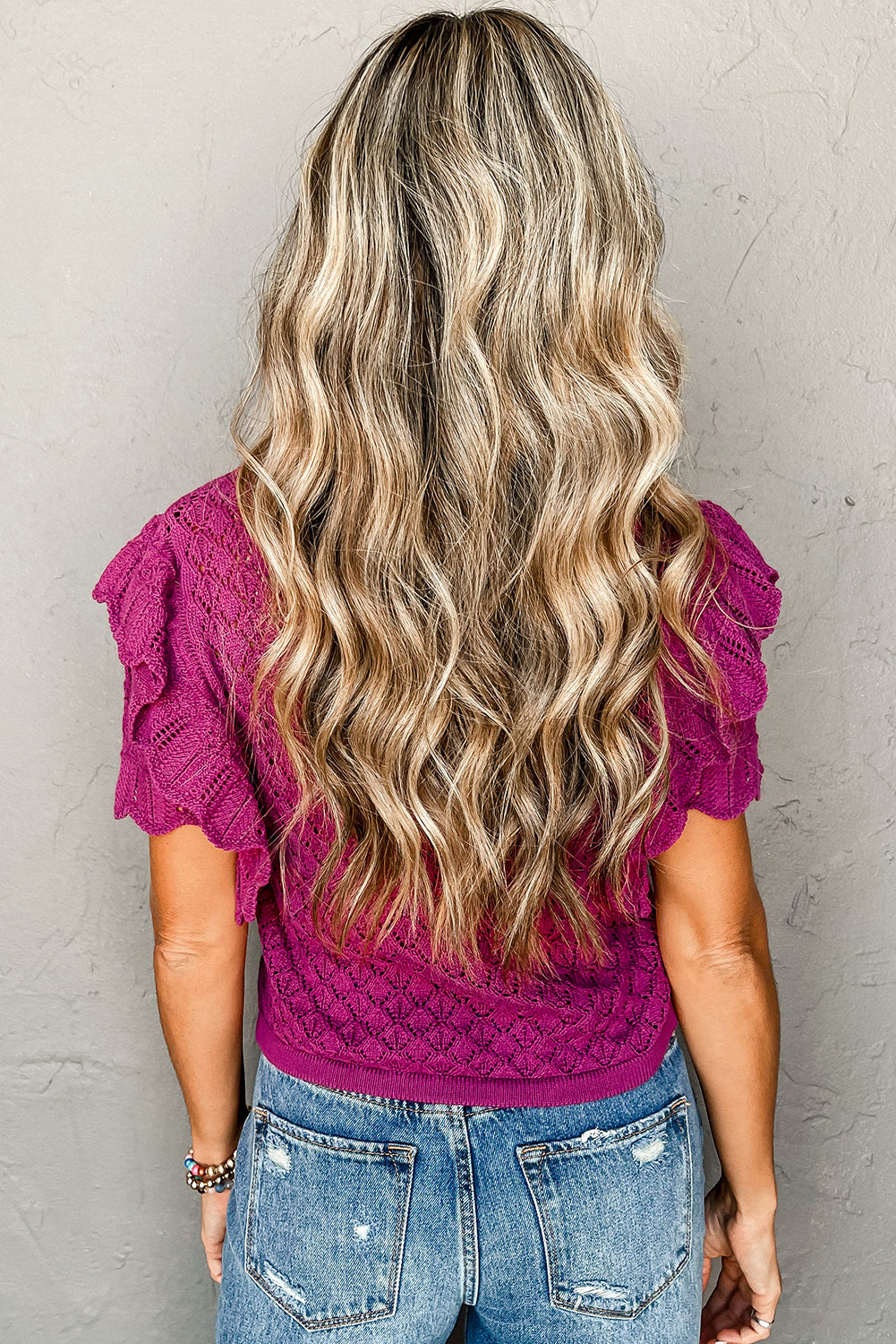 Violet Ruffled Short Sleeve Textured Knit Sweater