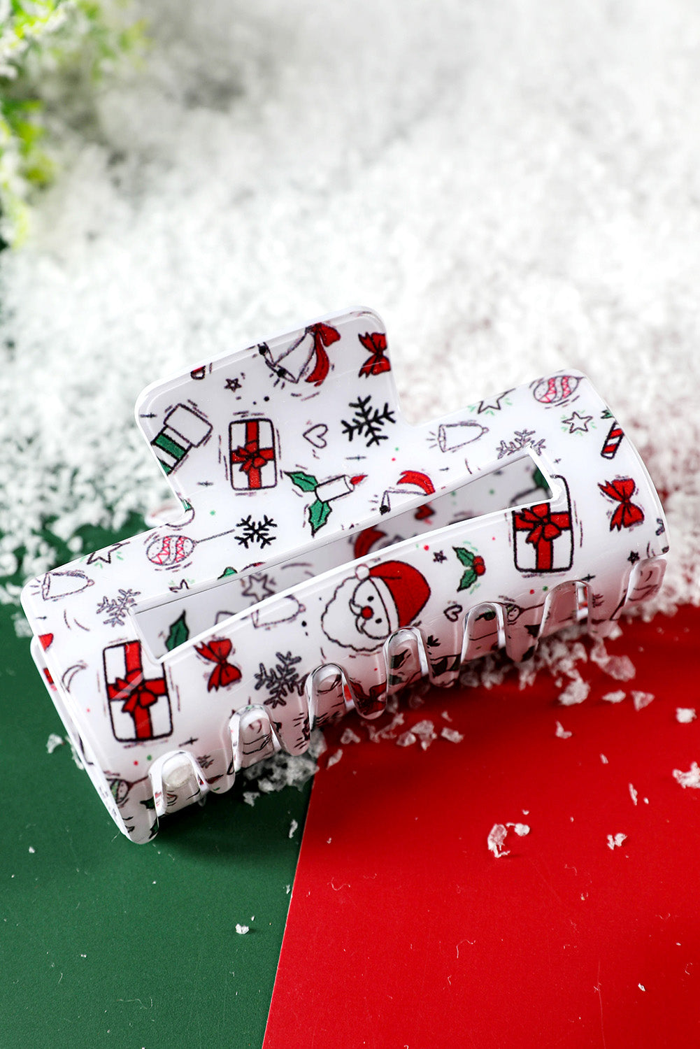 White Christmas Pattern Print Cut Out Hair Claw Clip