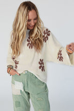 White Colorblock Floral Pattern Round Neck Sweater