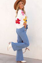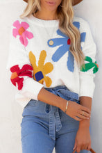 White Colorful Big Flower Pattern Crewneck Sweater