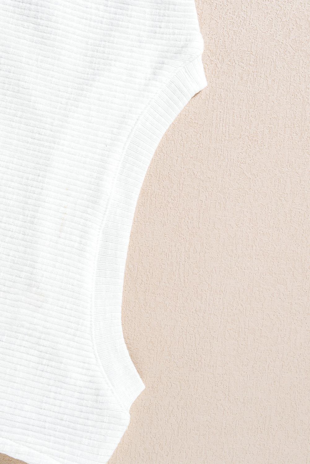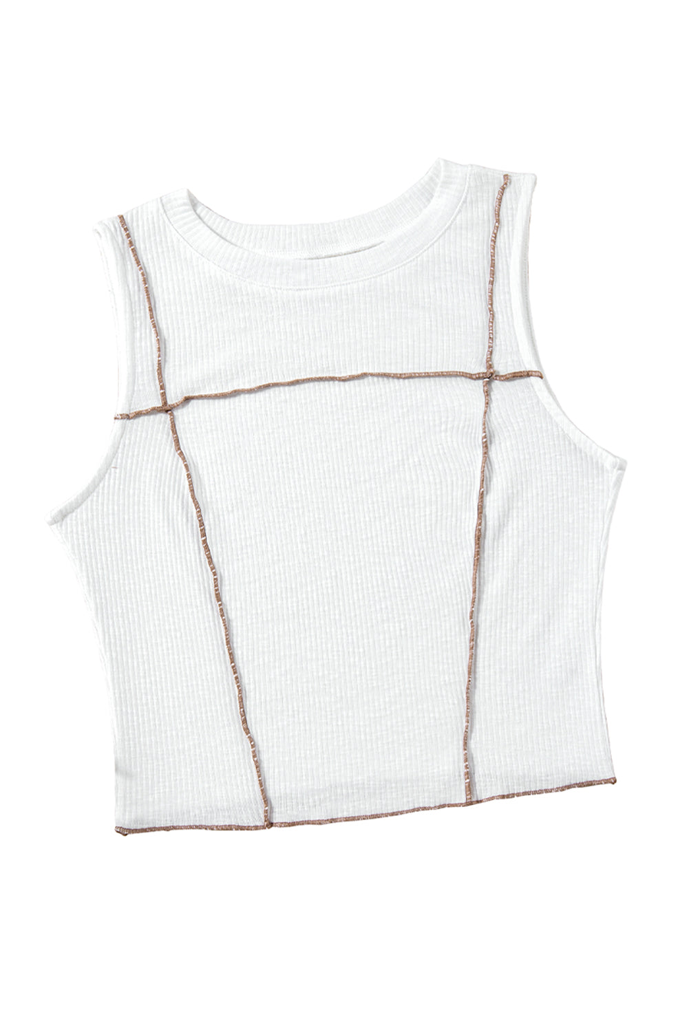 Expertly crafted with a ribbed design and contrast seams, our White Contrast Seams Ribbed Tank Top offers a sleek and stylish look. Made from high-quality material, this tank top provides comfort and durability. Perfect for any occasion, stay cool and confident in this versatile top.