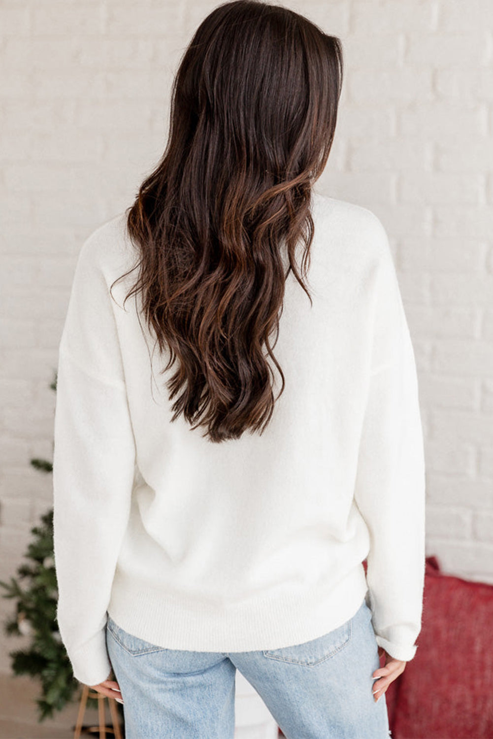 White Tinsel Merry and Bright Graphic Christmas Sweater