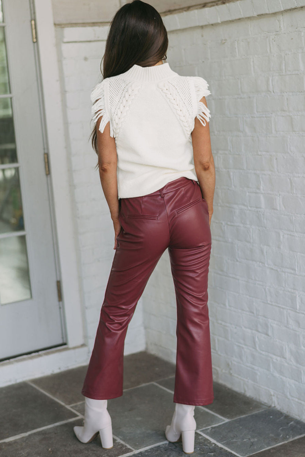 White Woven Tasseled Sleeveless Mock Neck Sweater Vest