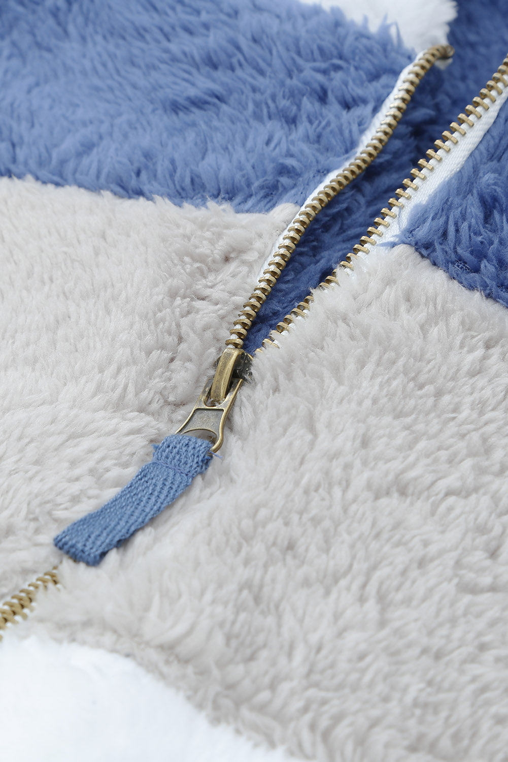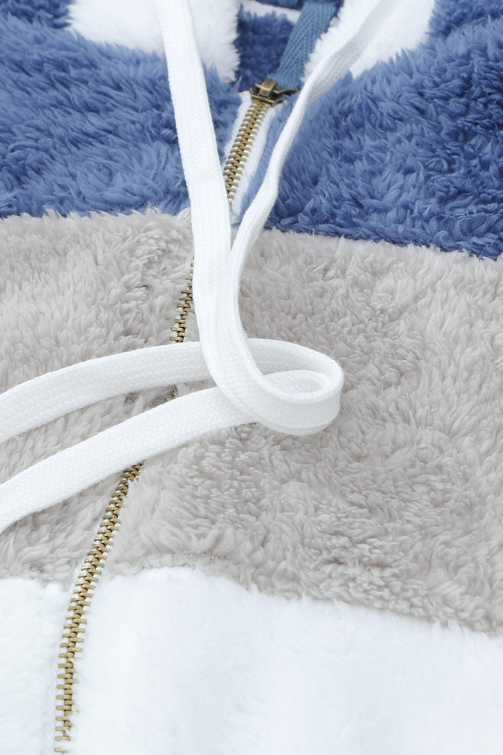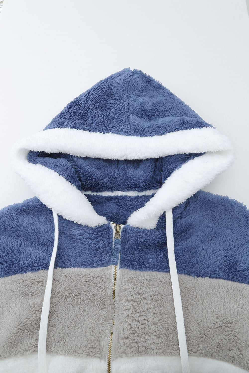 Abrigo sherpa con cremallera y bloques de color rojo vino con capucha