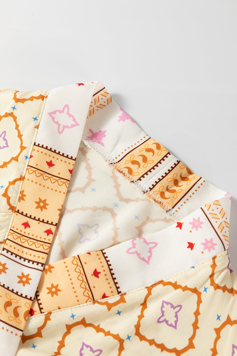 Yellow Bohemian Geometric Printed Loose Sleeve Long Kimono