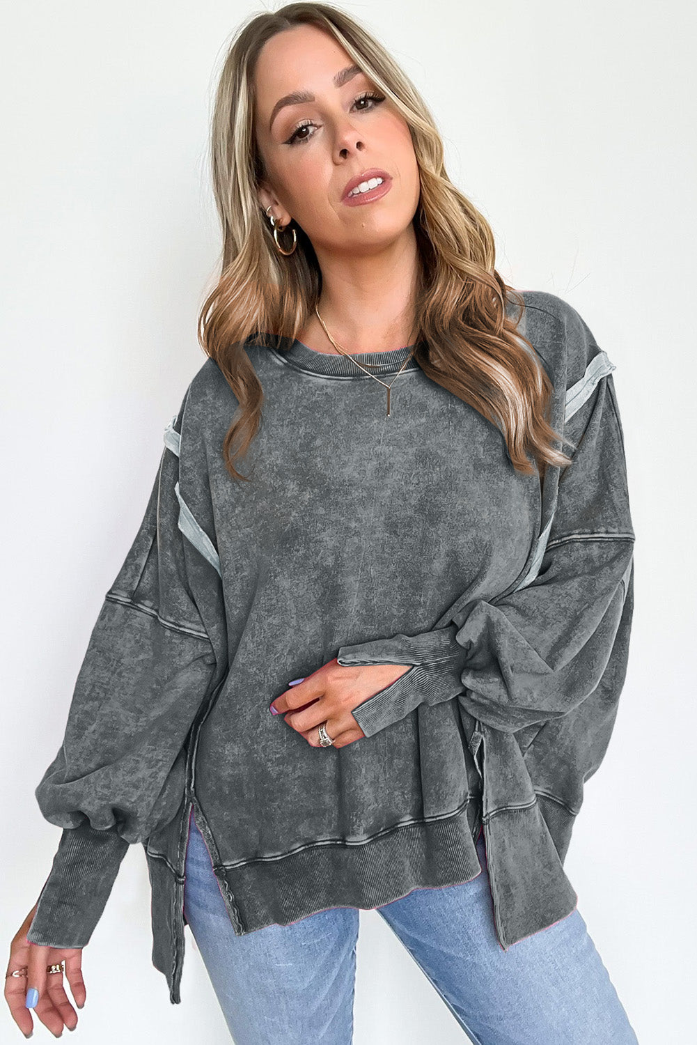 Sweat-shirt à coutures contrastées, coupe décontractée et délavé à l'acide, avec fentes