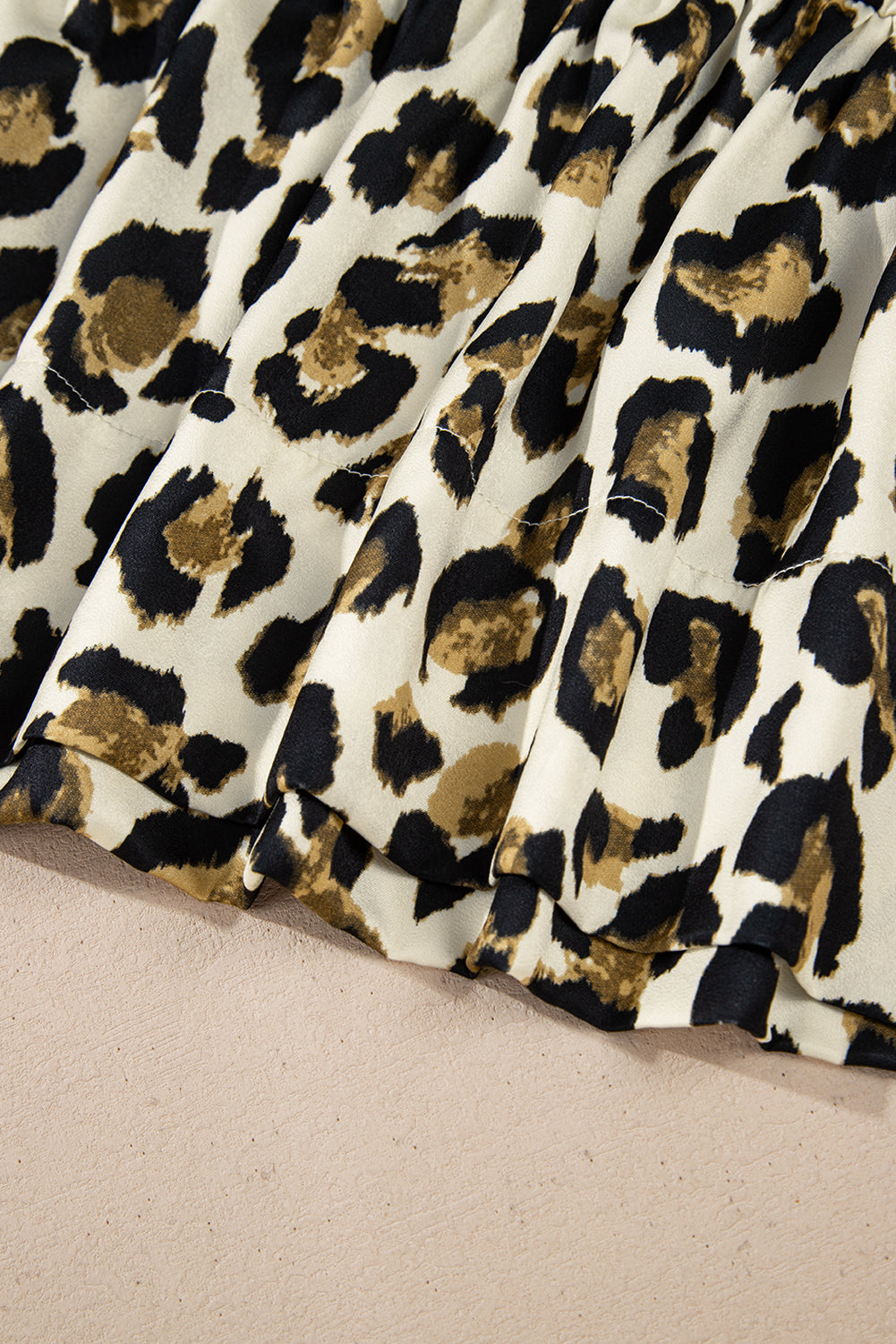 Chemisier péplum à manches bouffantes et nœud papillon sur le devant, motif léopard abricot