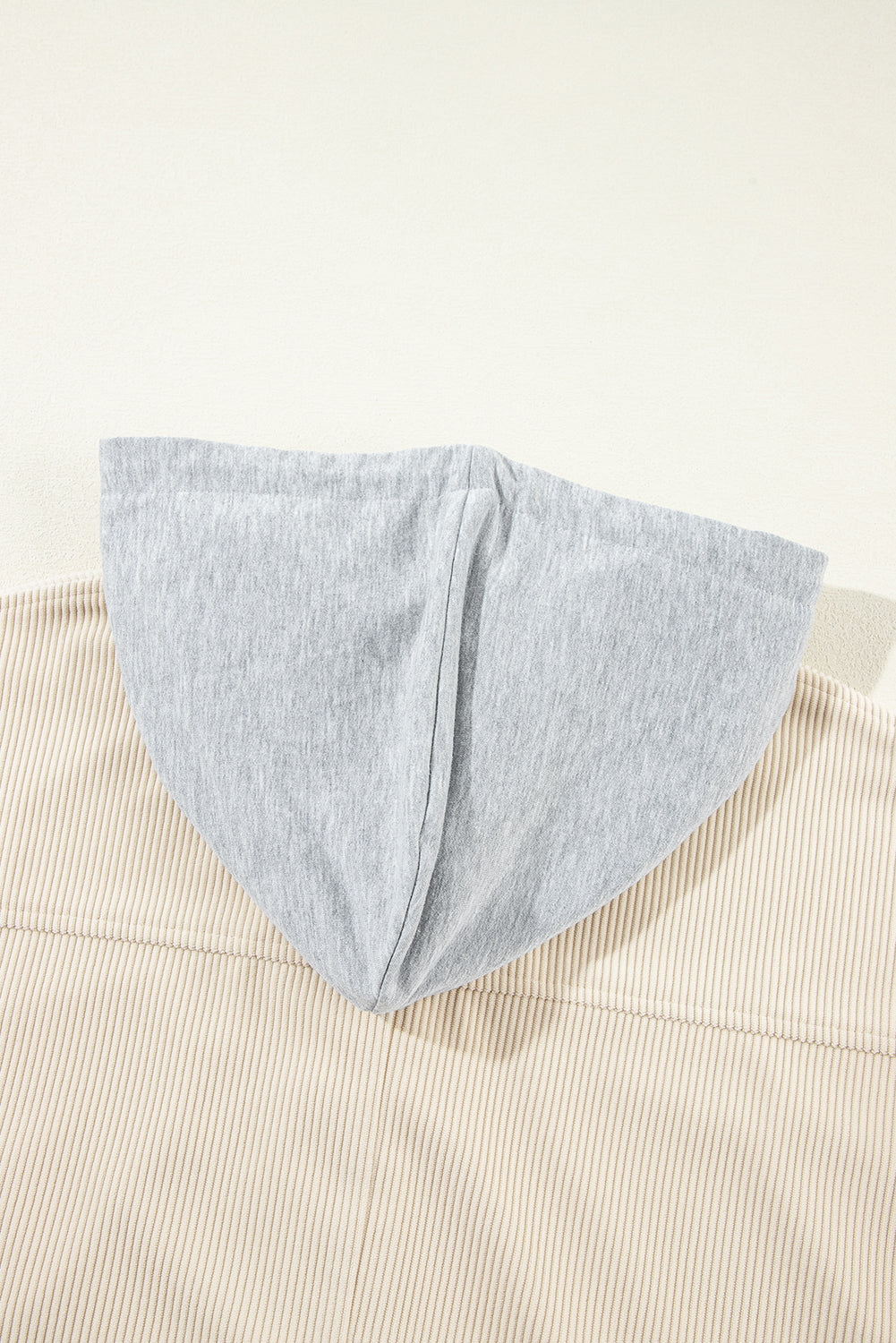 Veste-chemise à capuche surdimensionnée en velours côtelé beige contrasté