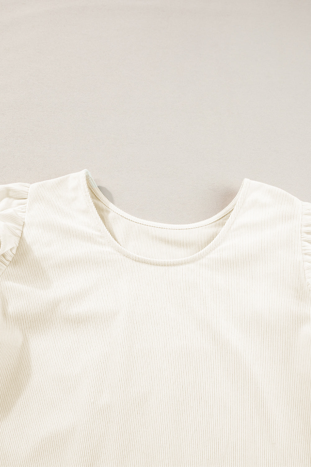 Chemisier beige en velours côtelé à volants et manches volantées