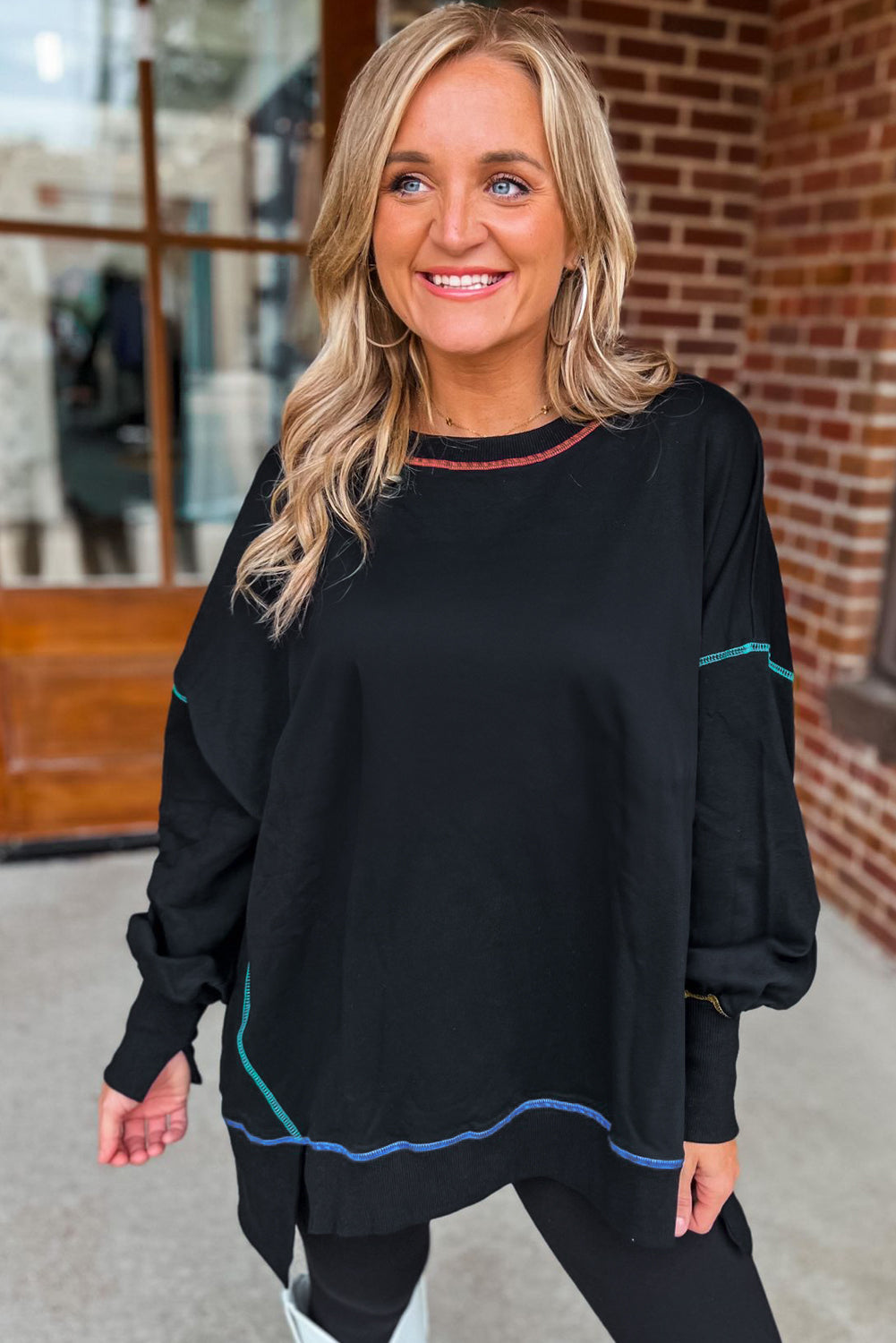 - Ce sweat-shirt à épaules tombantes ajoute une ambiance décontractée et décontractée