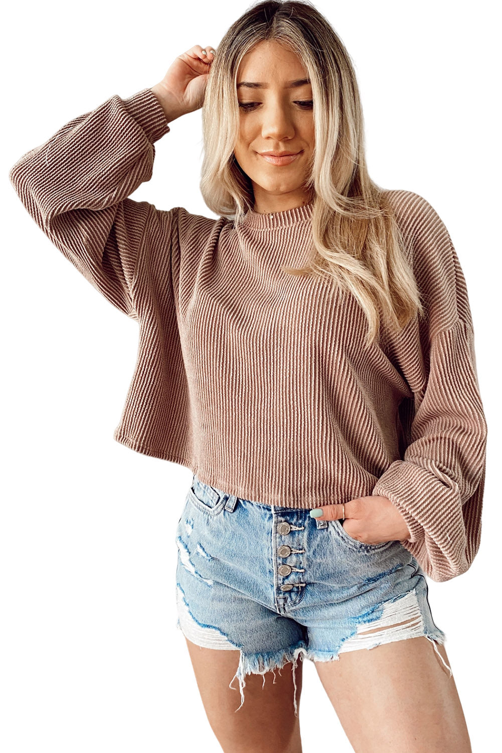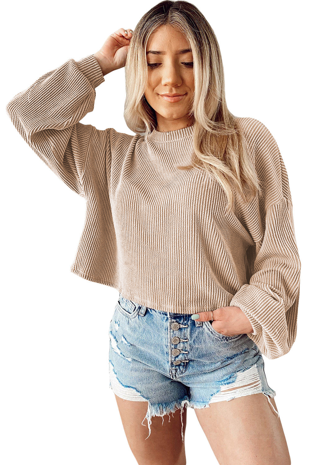 - La conception à épaules tombantes associée à des manches bouffantes pour un look décontracté