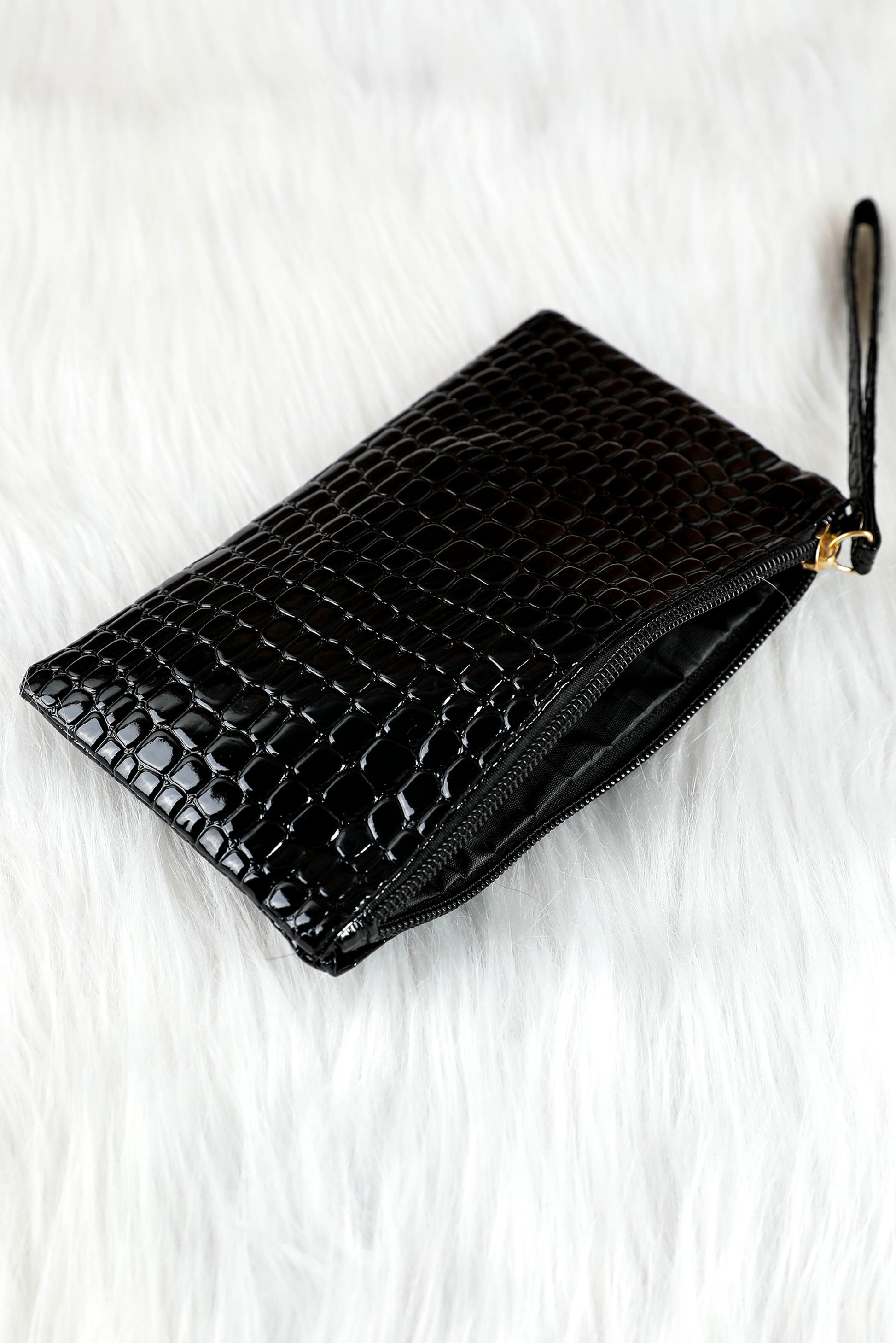 Ce portefeuille zippé à motif crocodile noir est un accessoire élégant et fonctionnel. Son motif crocodile ajoute une touche de luxe, tandis que sa dragonne facilite le transport. La fermeture zippée assure la sécurité de vos affaires. Avec ce portefeuille, vous restez organisé et stylé où que vous soyez.