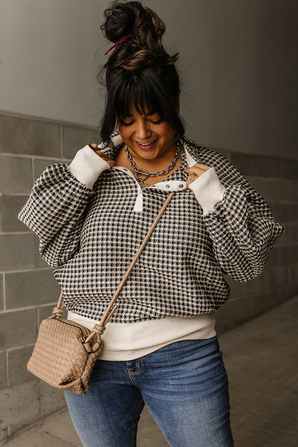 Sweat-shirt noir à col contrasté bicolore grande taille
