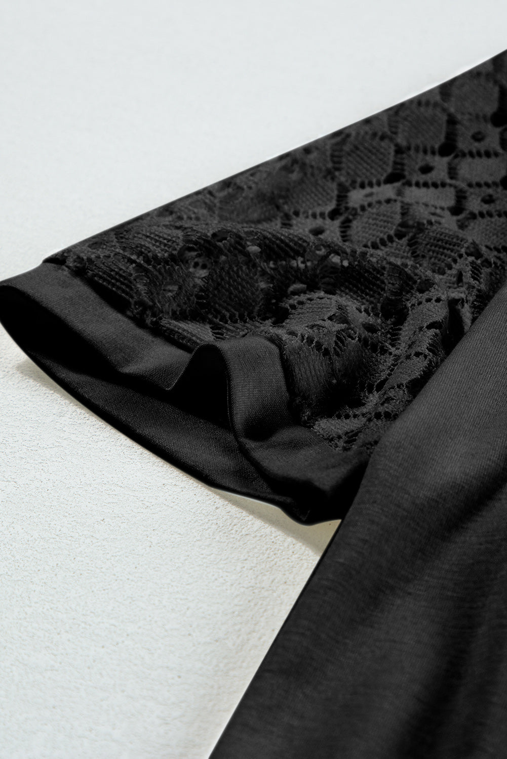 T-shirt à manches raglan en dentelle contrastée avec coutures noires