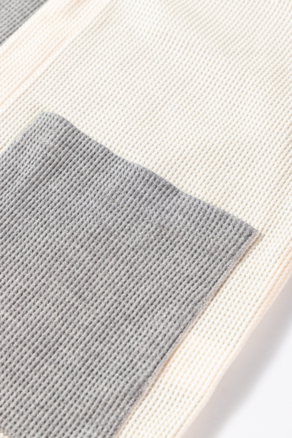 Cardigan ouvert à rayures noires et patchwork avec poche