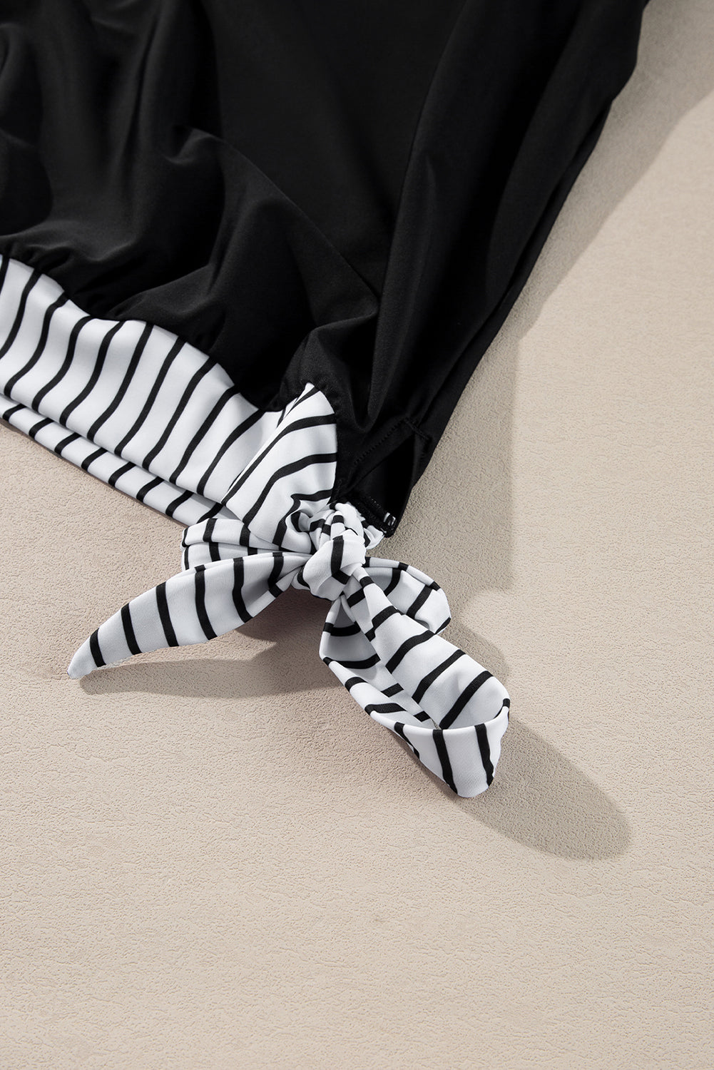 Ensemble tankini à rayures noires et cordon de serrage latéral