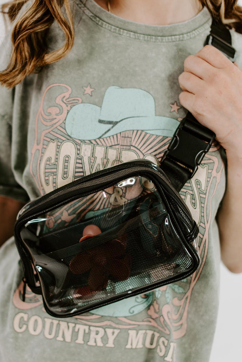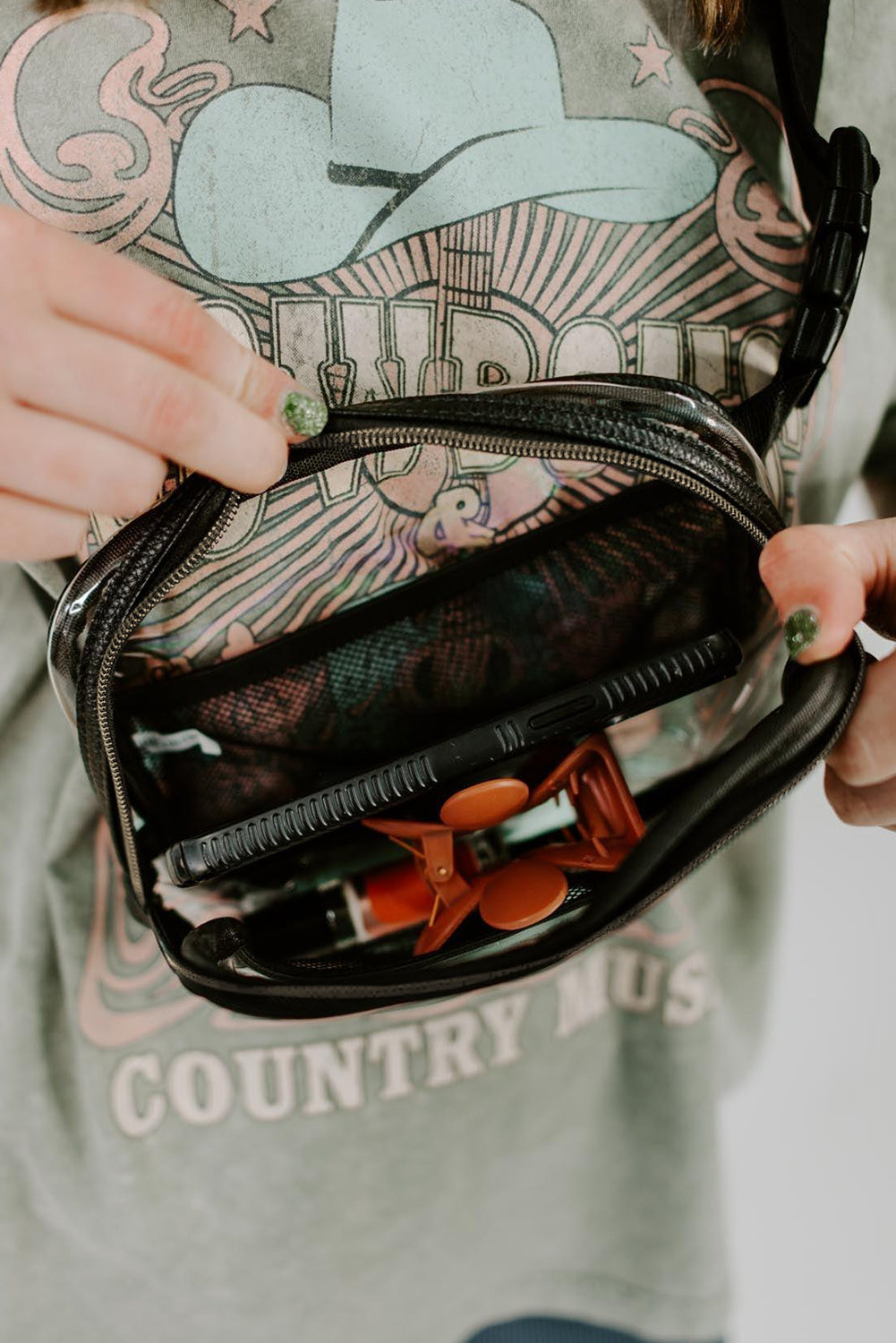Sac banane transparent à bretelles réglables et fermeture éclair blanc brillant
