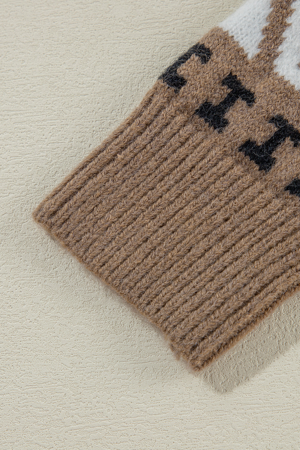 Cardigan zippé à col et bordure côtelée imprimé western marron