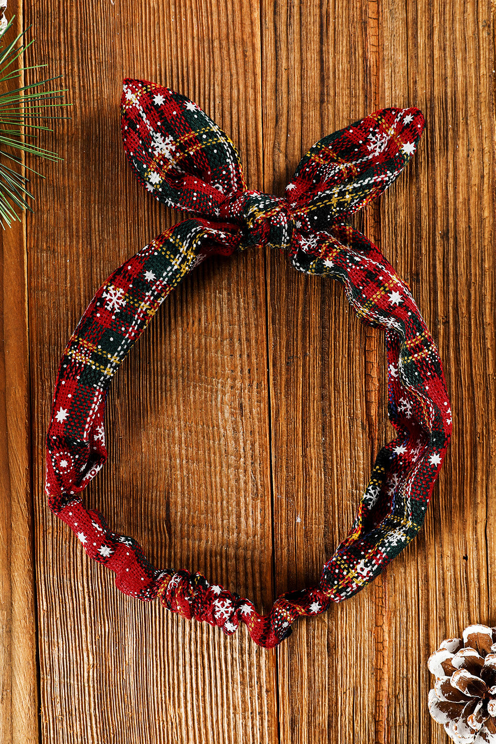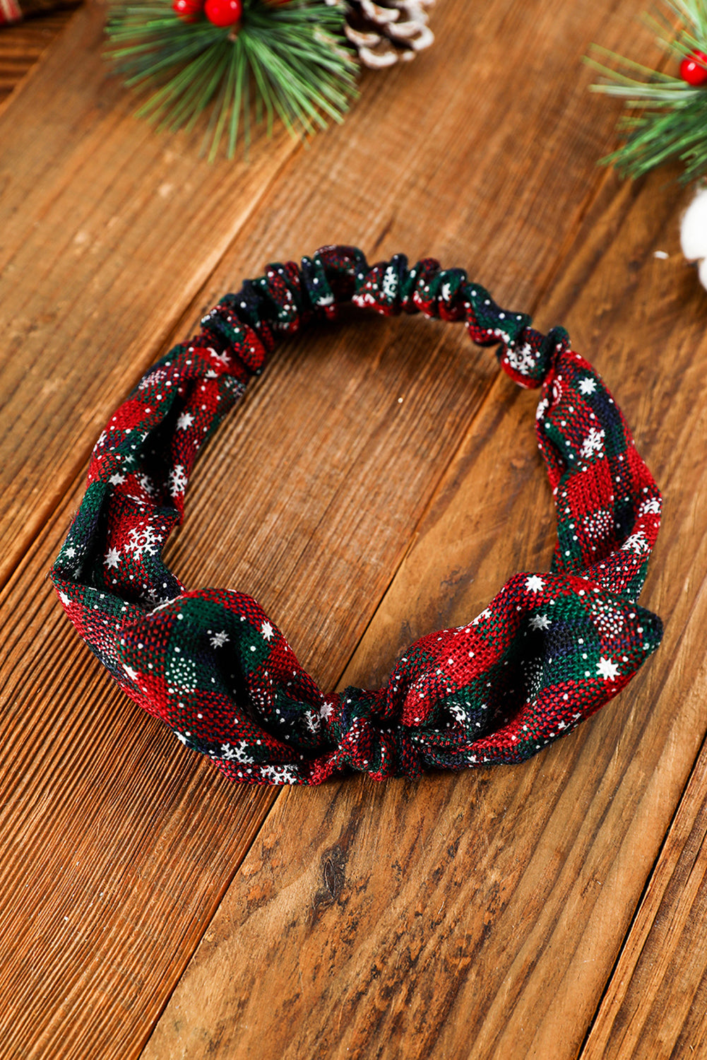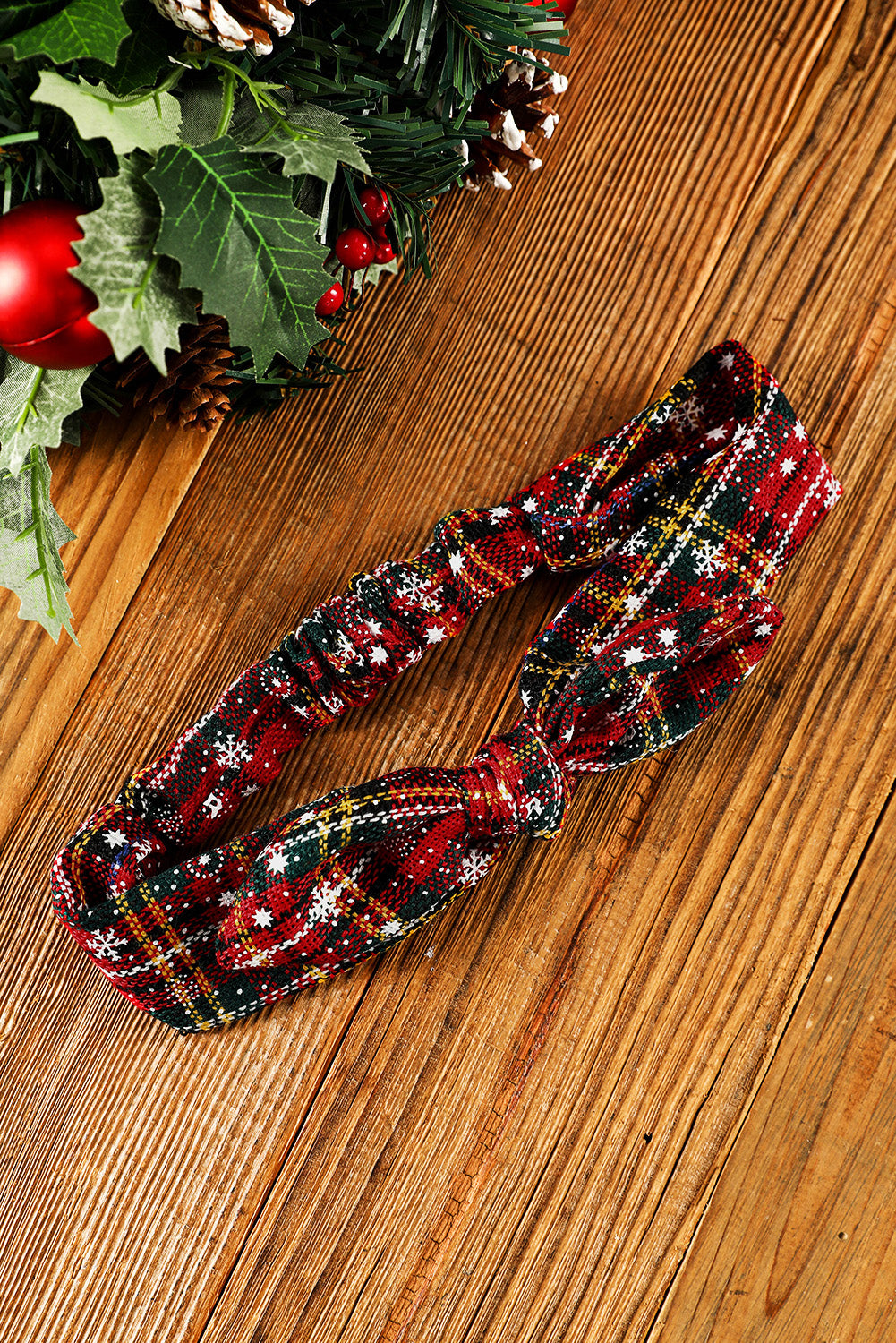 Élastique à cheveux bordeaux à carreaux de Noël et imprimé flocons de neige