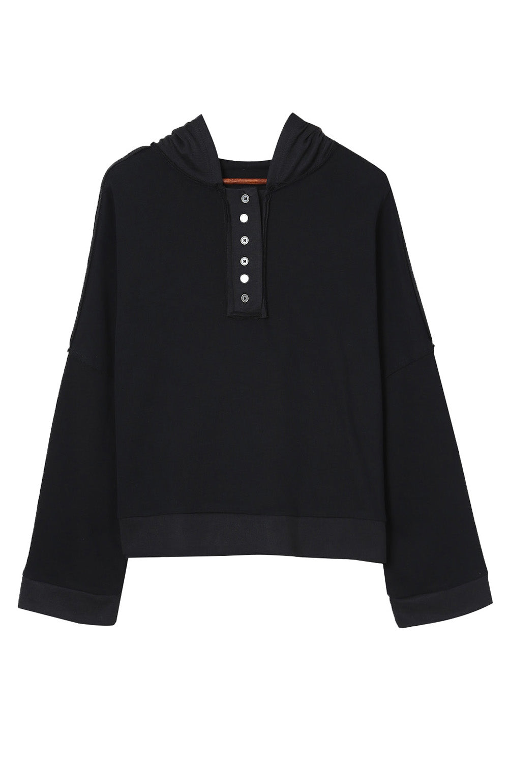 Sweat à capuche décontracté à boutons et bordures patchwork unies