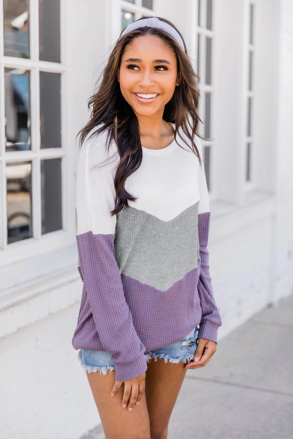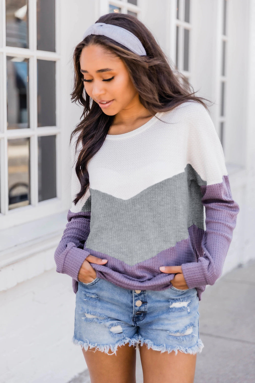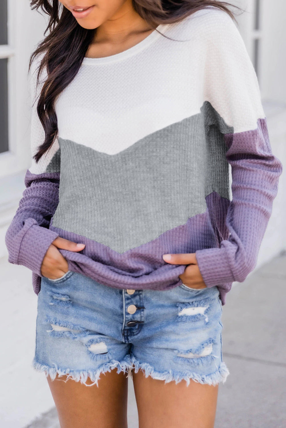 Sweat-shirt à motif gaufré à chevrons et blocs de couleurs