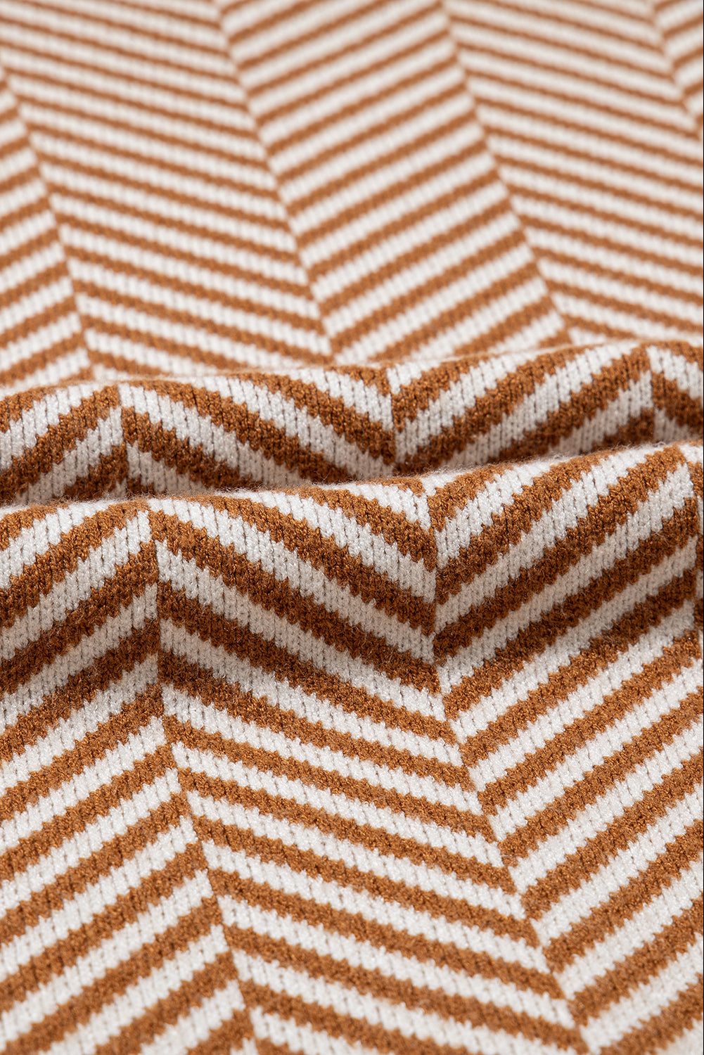 Pull ras du cou à épaules tombantes et bords contrastés couleur café