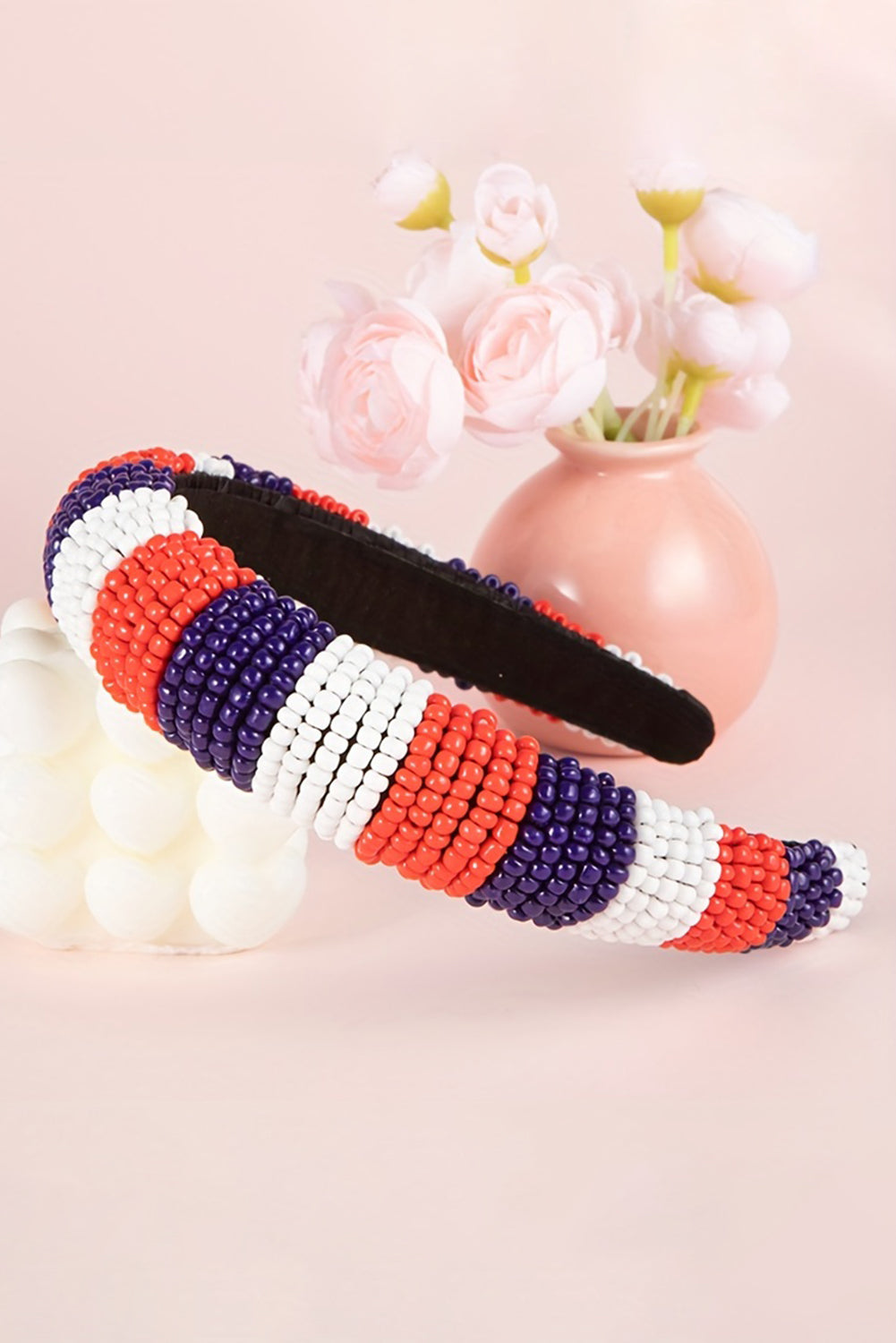 Sublimez votre tenue du Jour du Drapeau avec notre large bandeau bleu foncé orné de perles. Conçu pour allier confort et style, il apporte une touche d'élégance grâce à son motif perlé raffiné. L'accessoire idéal pour souligner votre patriotisme et afficher votre soutien en ce jour spécial.