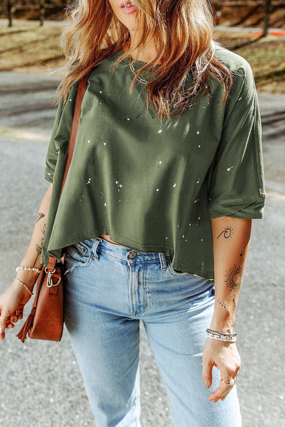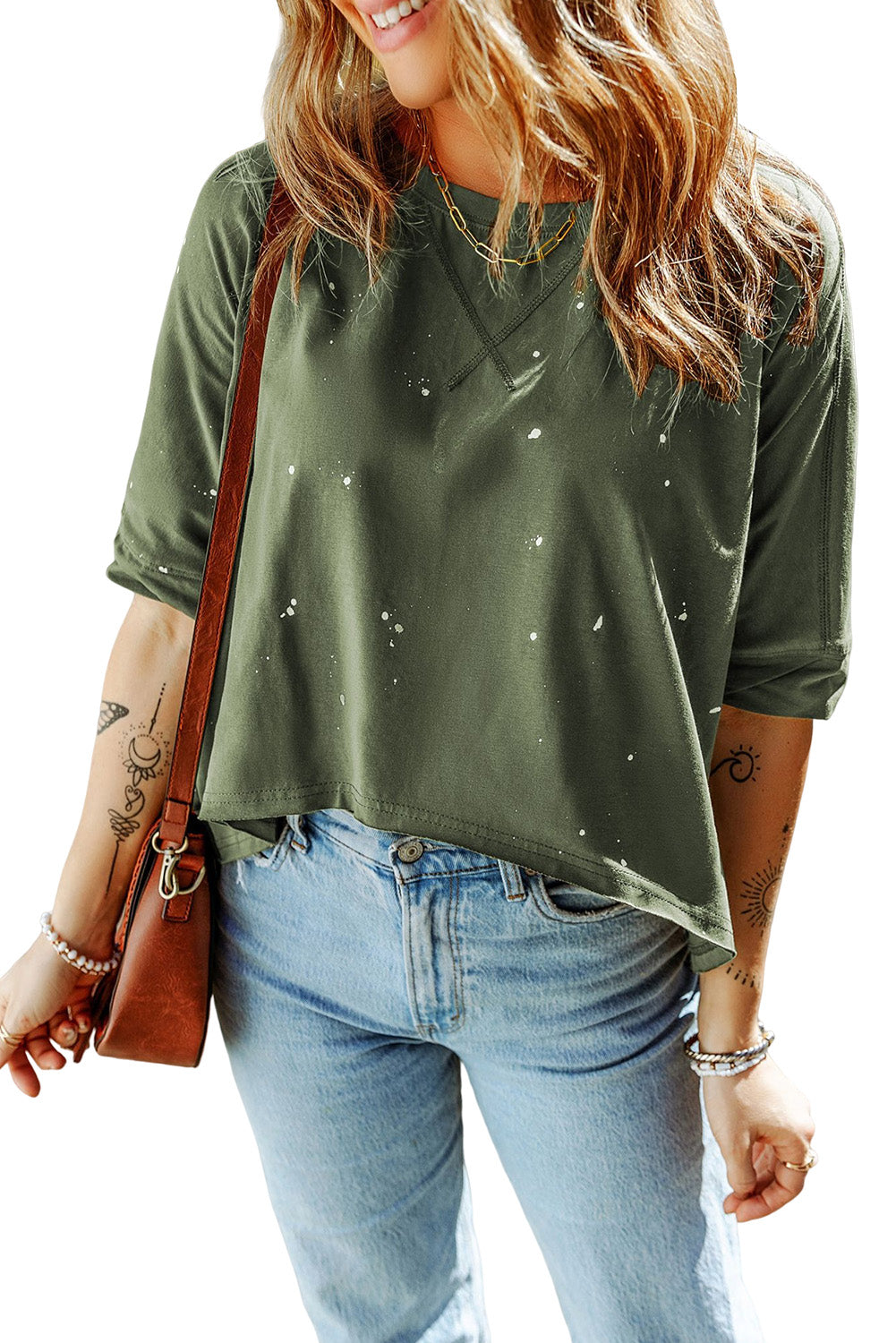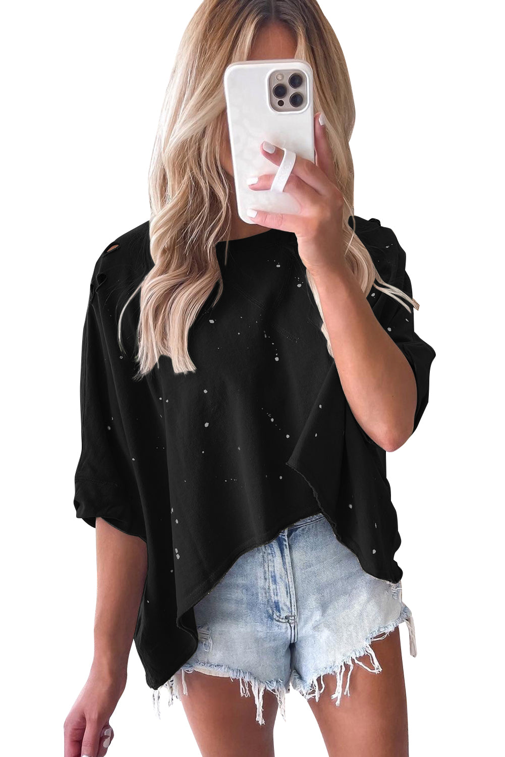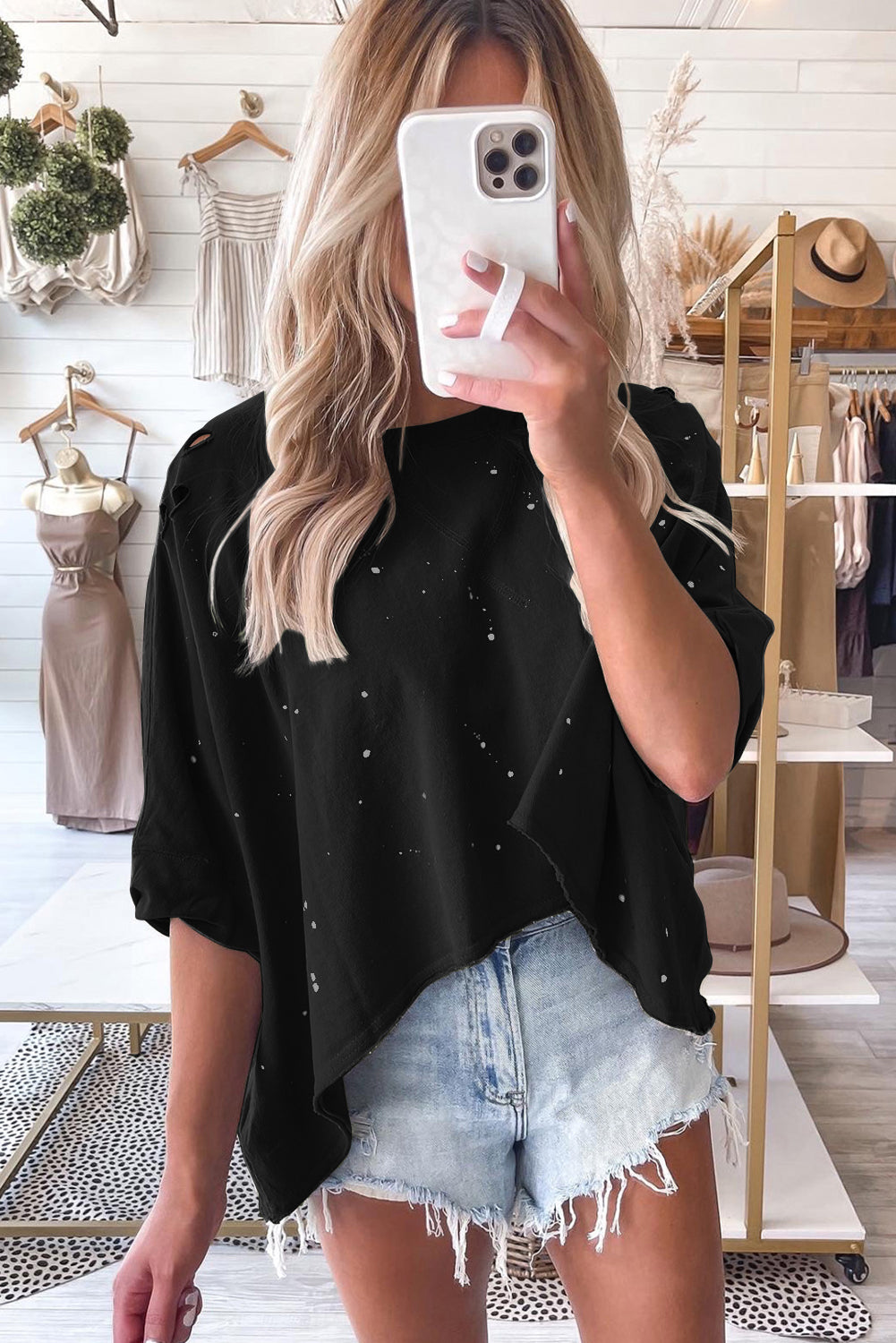 Haut à manches courtes et ourlet asymétrique délavé et vieilli