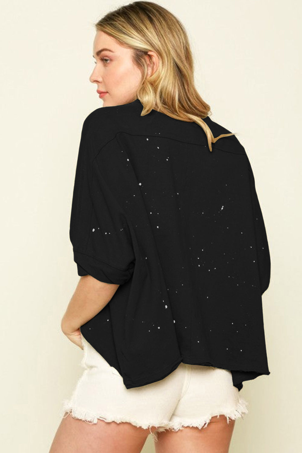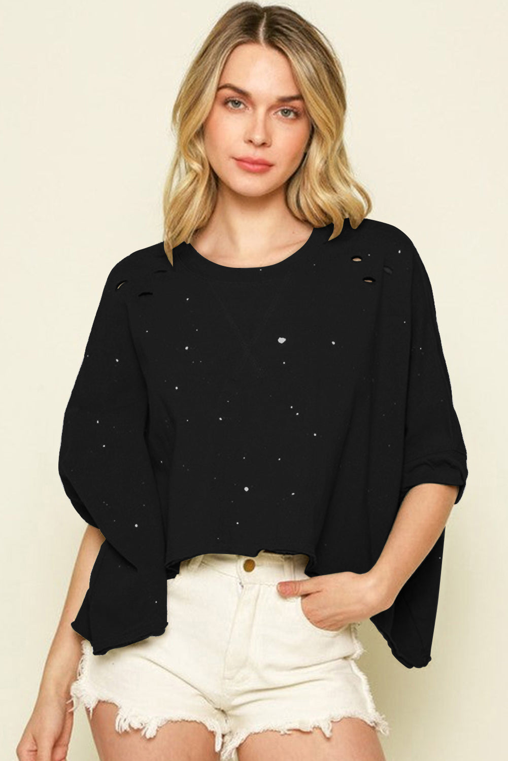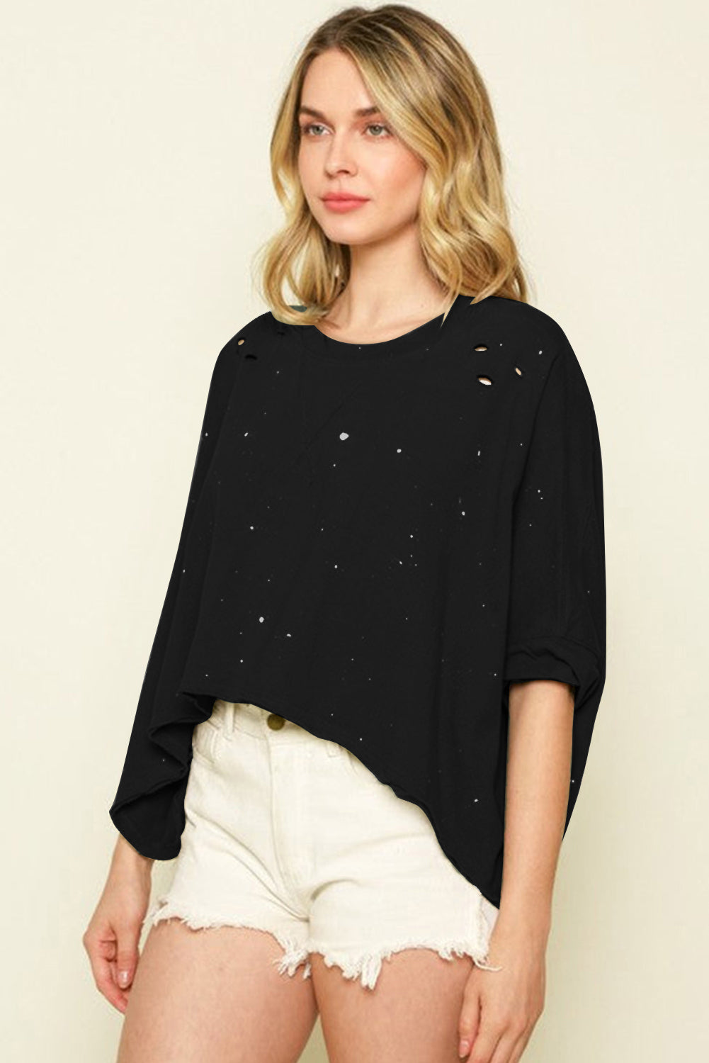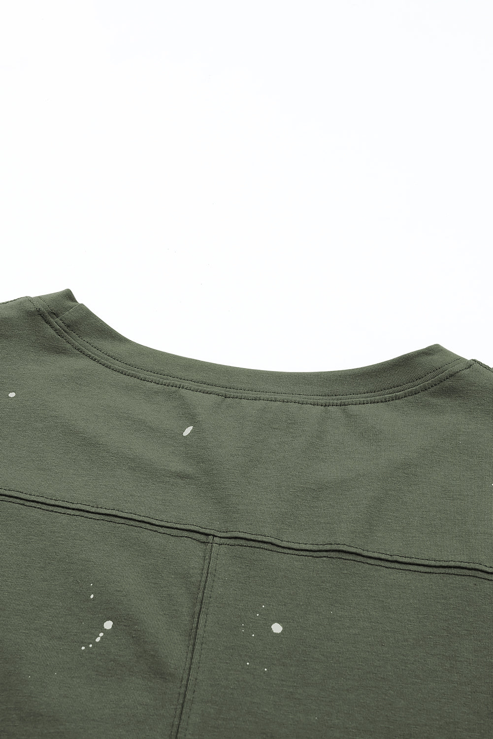 Haut à manches courtes et ourlet asymétrique délavé et vieilli