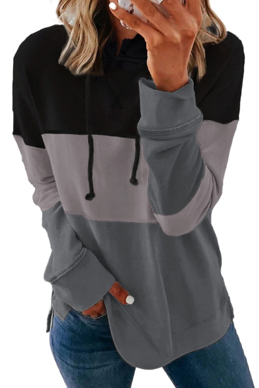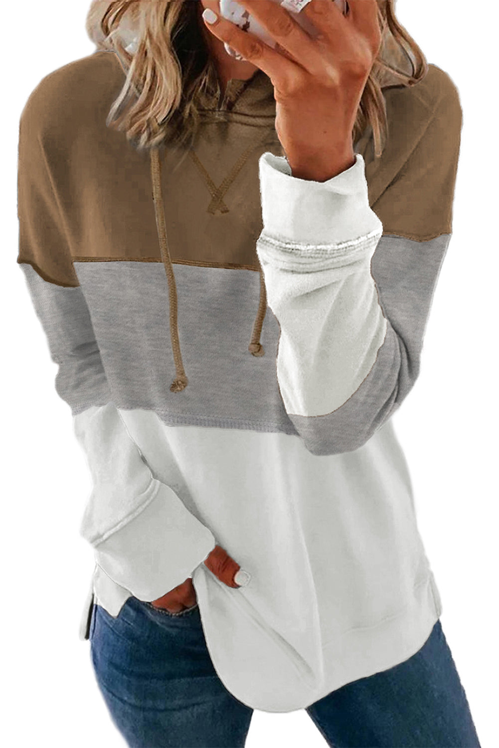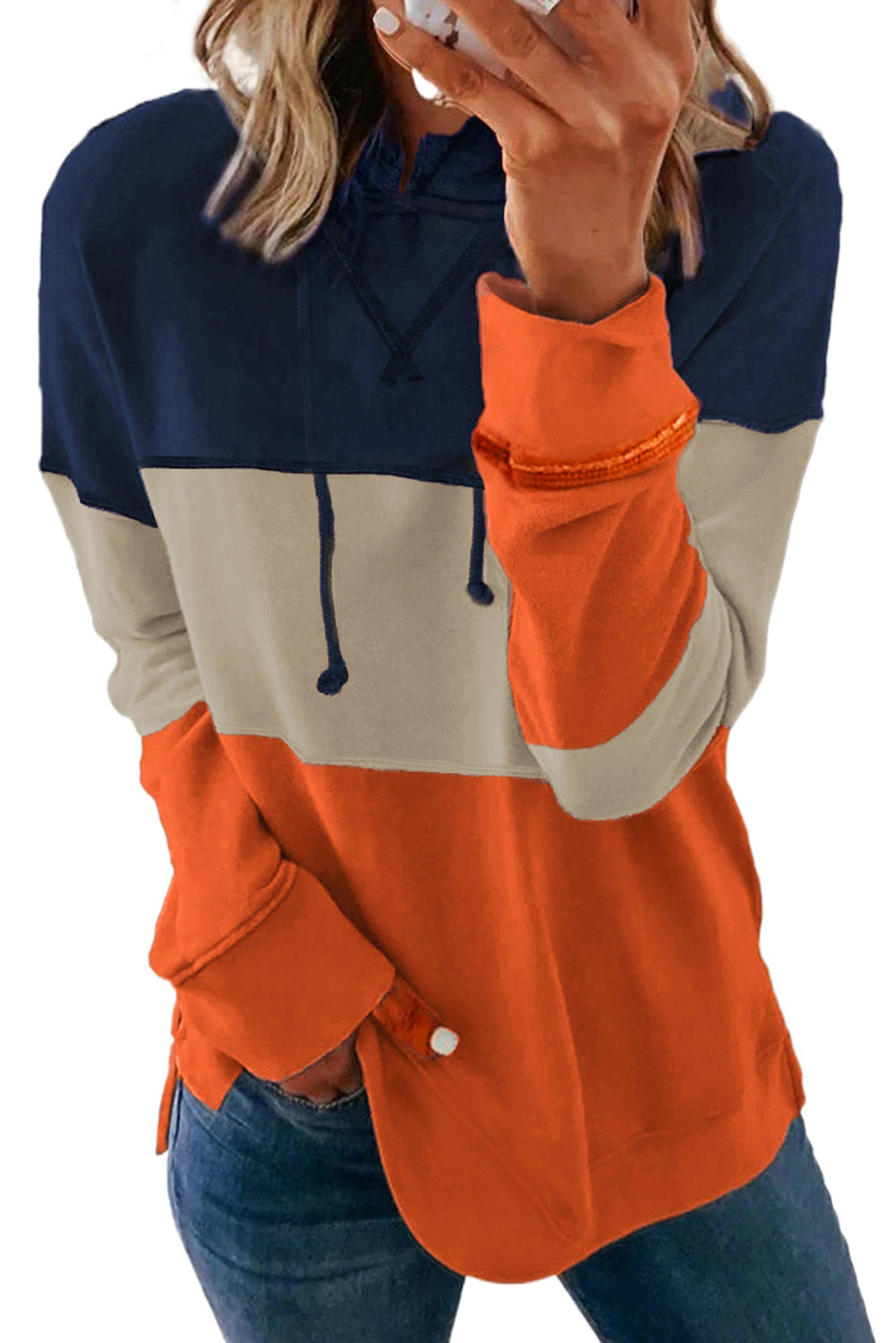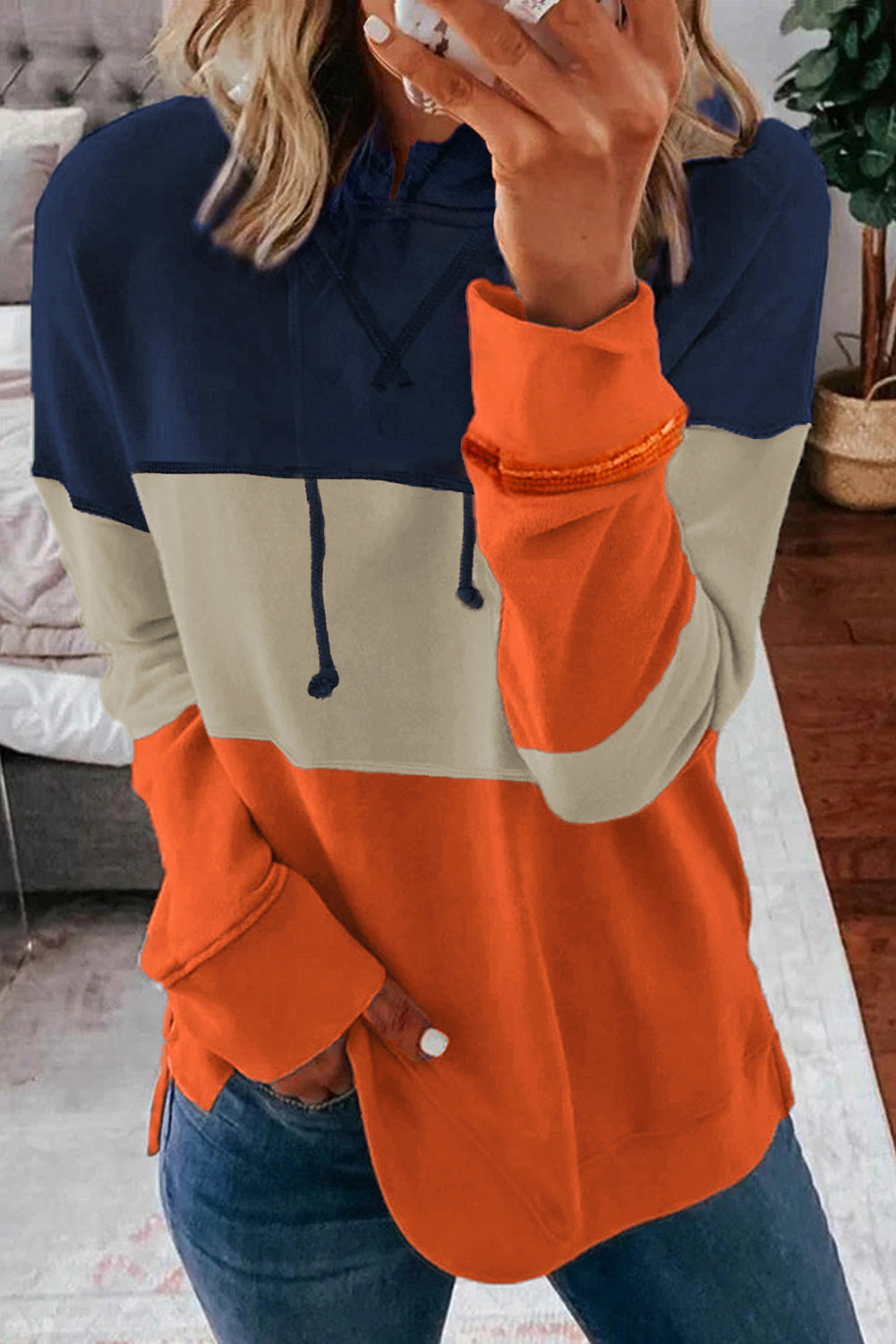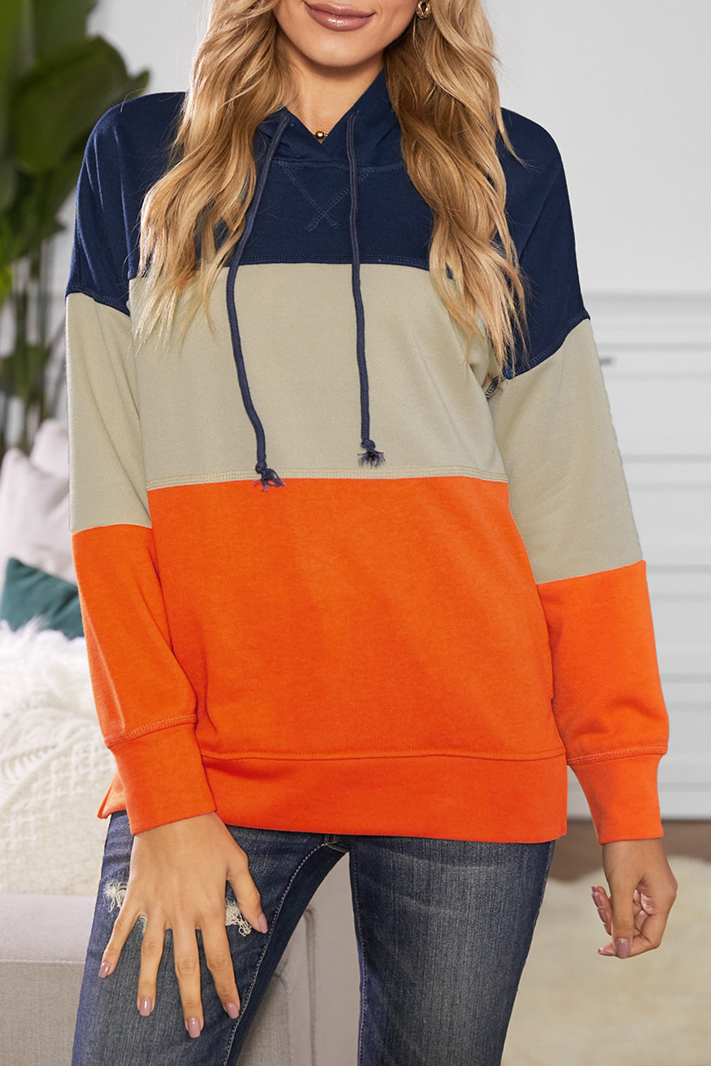 Sweat à capuche décontracté à rayures et blocs de couleurs avec cordon de serrage