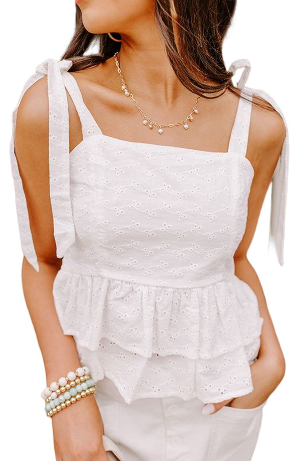 - Vous serez absolument adorable dans cet adorable débardeur à basque et épaules nouées à motif œillets.