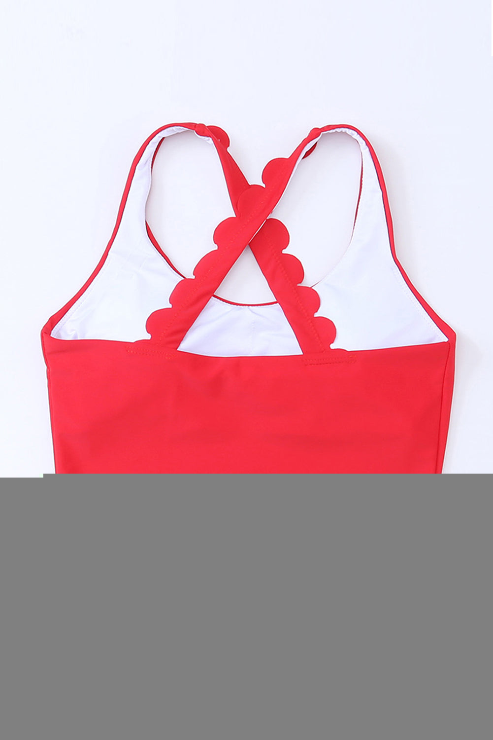 Haut de bikini court à bretelles croisées festonnées rouge feu