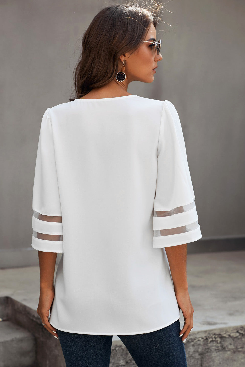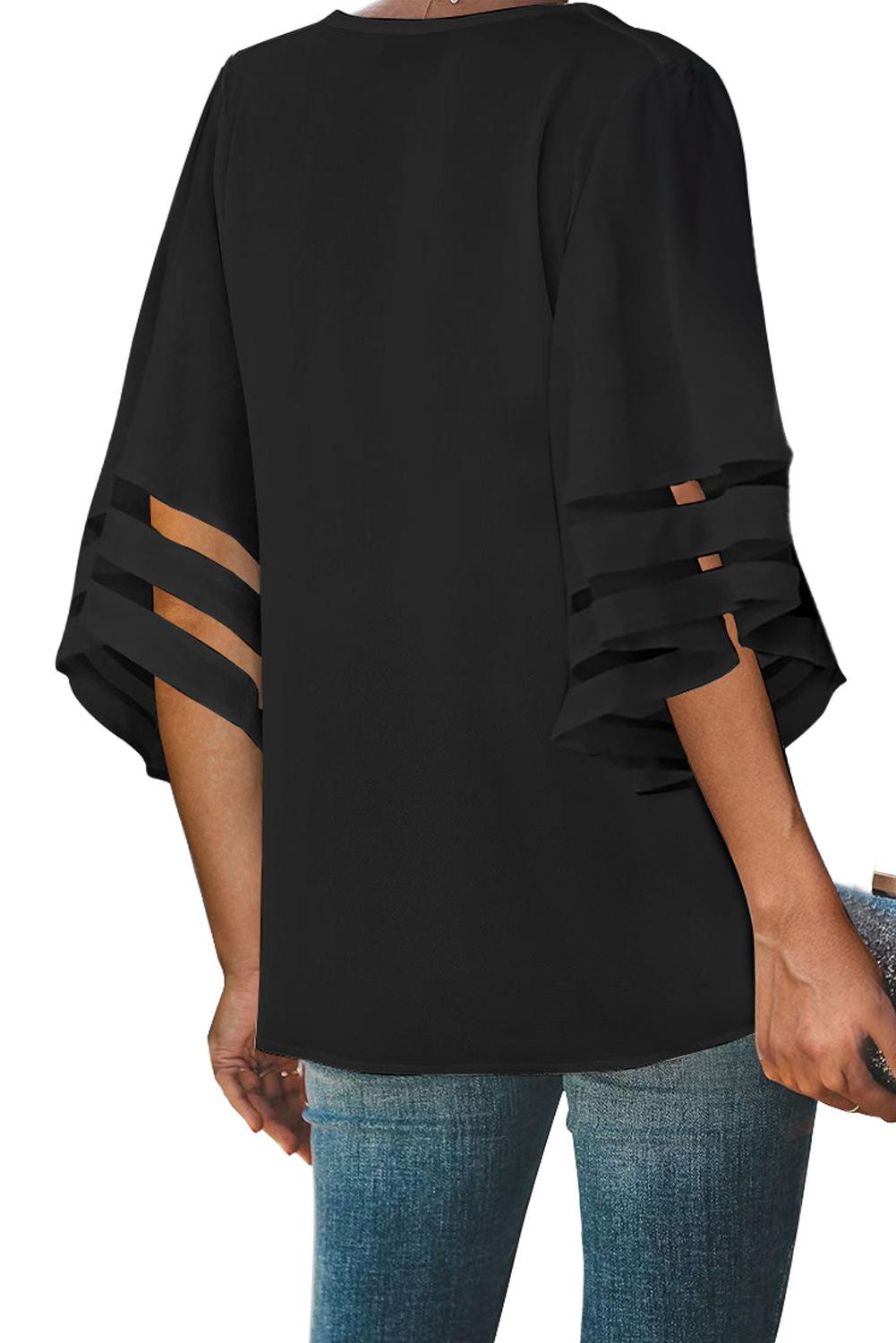 • Manches évasées chics en longueur 3/4 avec empiècement transparent