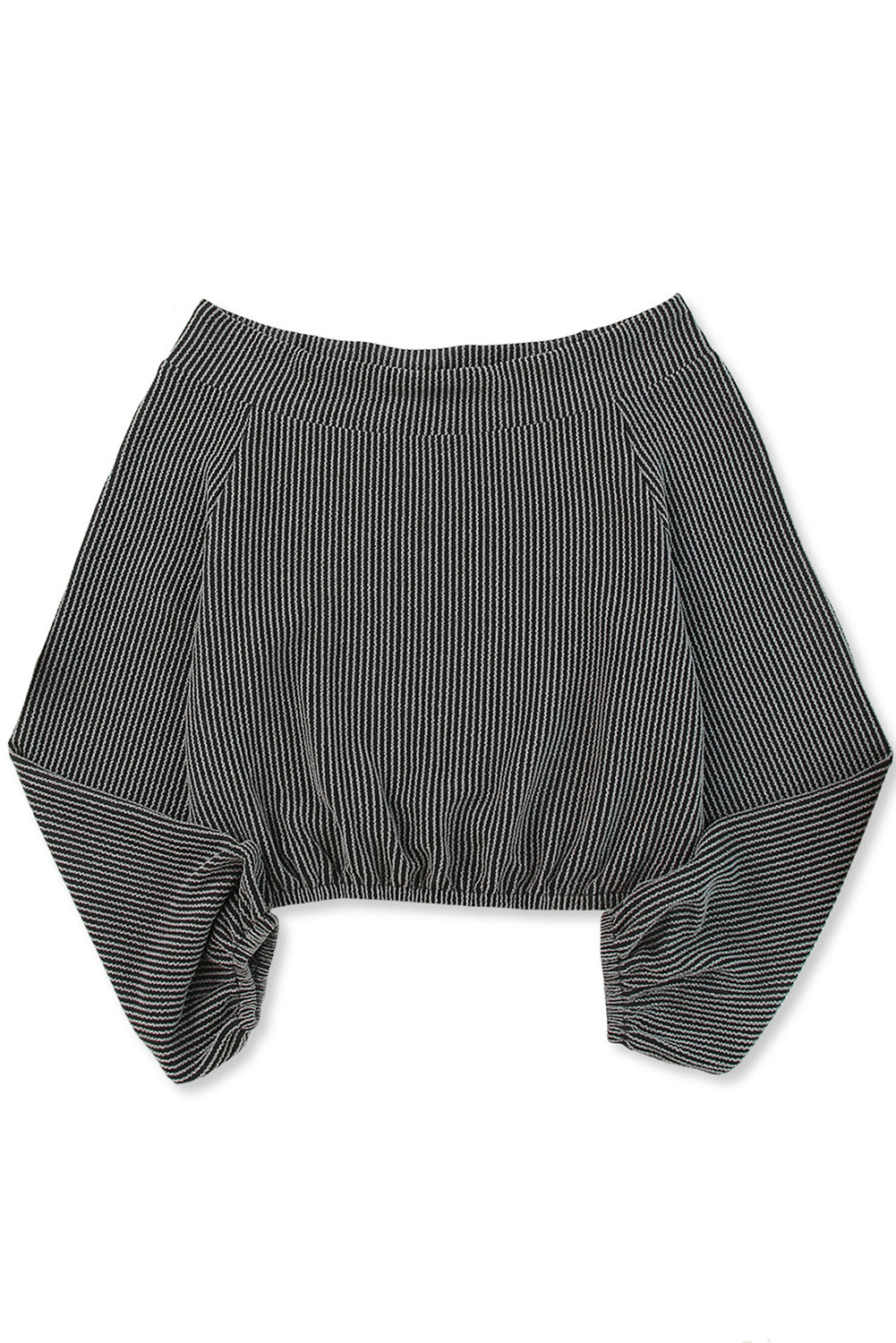 Haut gris en tricot côtelé à épaules dénudées et manches ballon