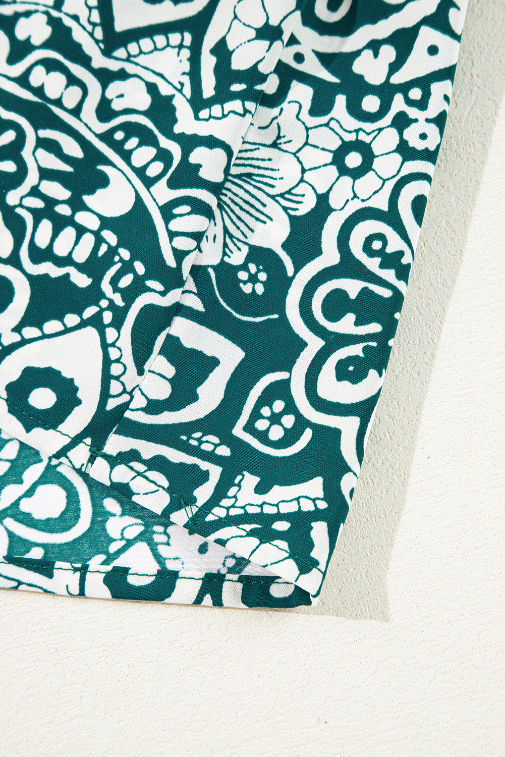 Robe grande taille verte à fleurs et manches à volants, col fendu