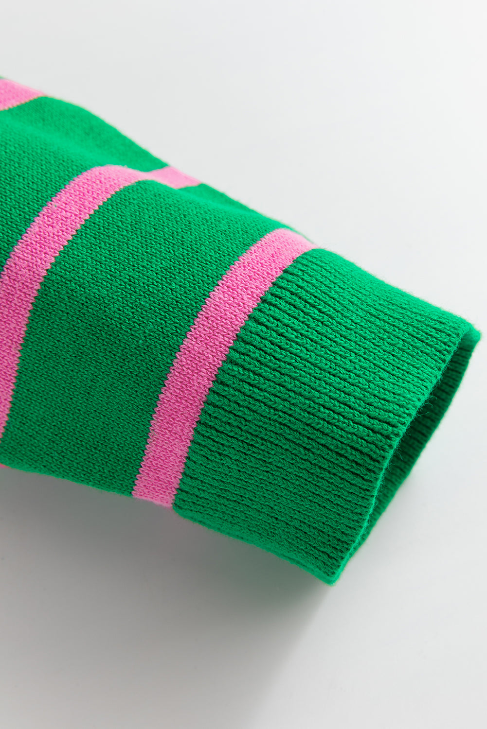 Confectionné avec soin, ce cardigan en maille, orné d'un charmant ruban rayé vert et d'un joli nœud, est un incontournable pour toute personne à la recherche de mode. Fabriqué avec des matières de qualité, il apporte une touche de style à toutes vos tenues et vous offre une chaleur douillette lors des journées fraîches.