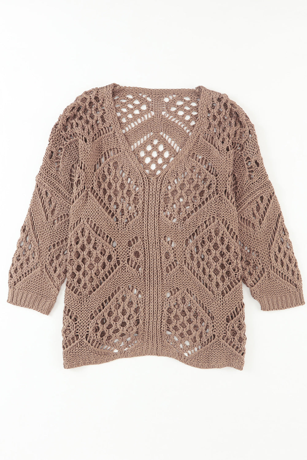 - Ce pull à manches dolman à col en V en tricot creux est audacieux et chic