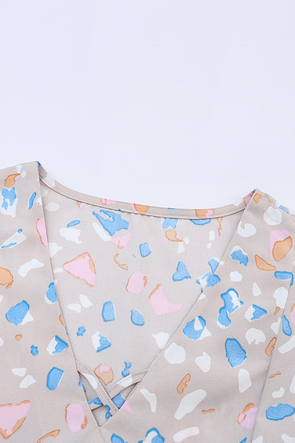 Robe kaki à imprimé croisé et col en V, manches flottantes