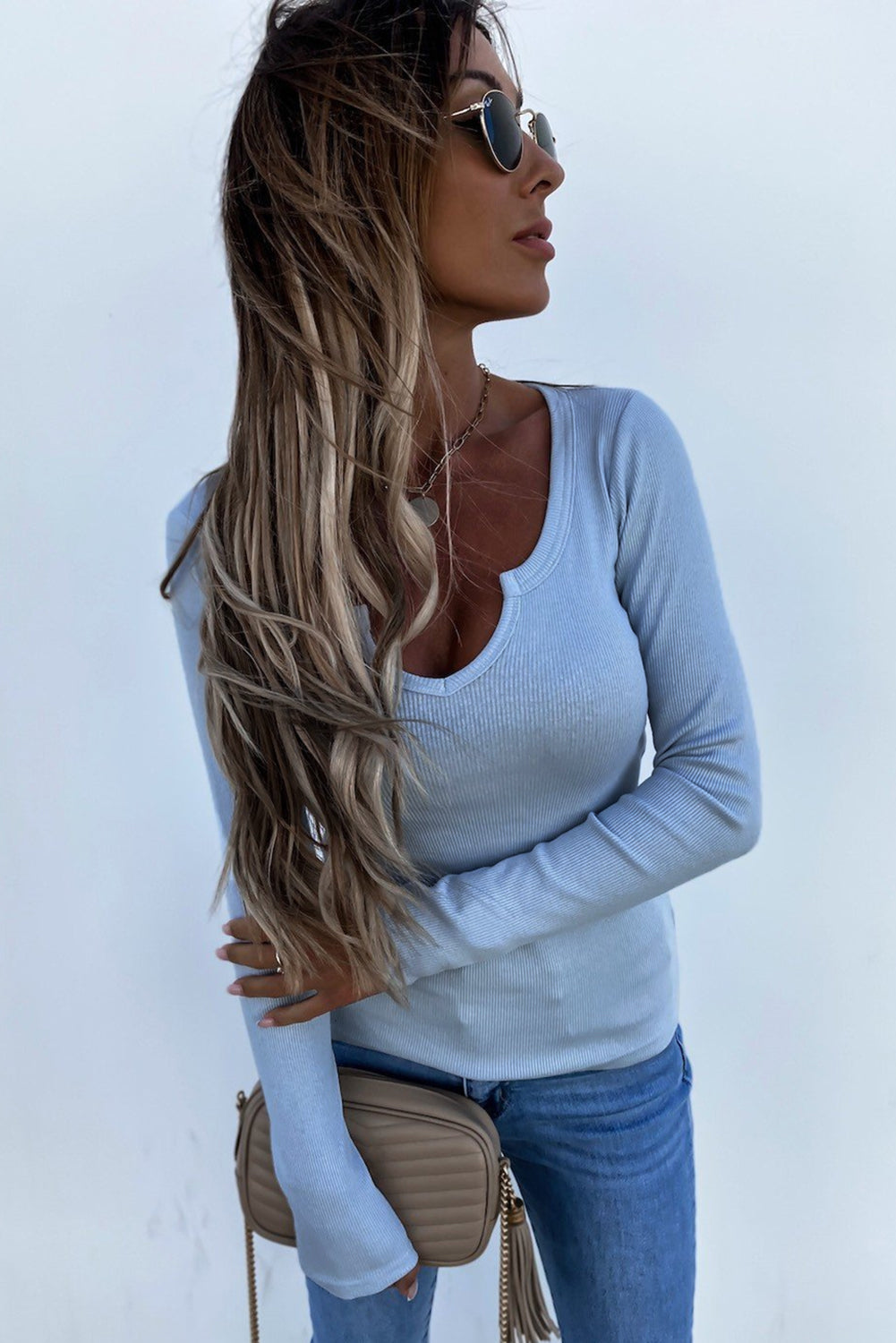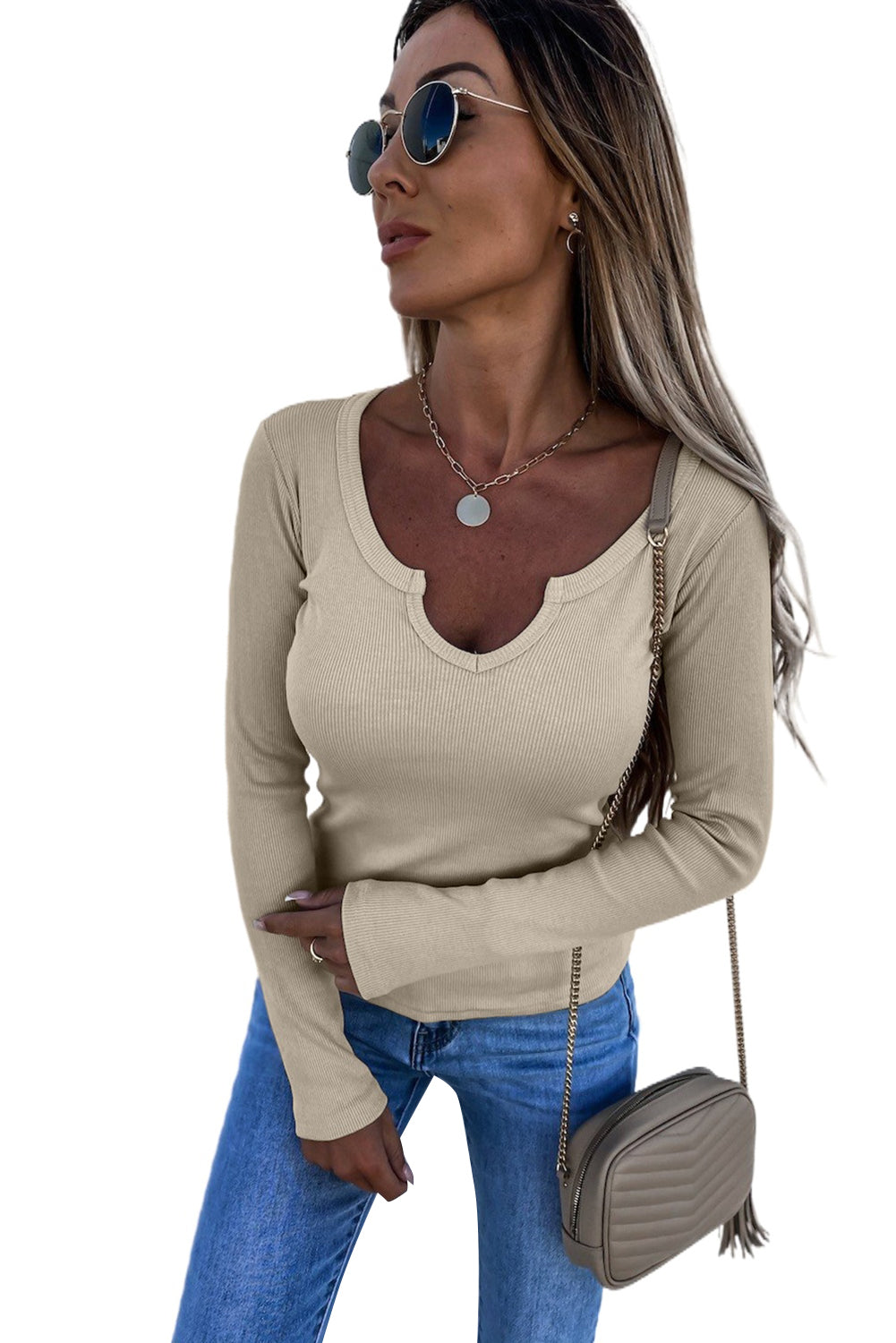 • Fabriqué en tissu tricoté côtelé, ce haut à manches longues est très élastique et confortable à porter