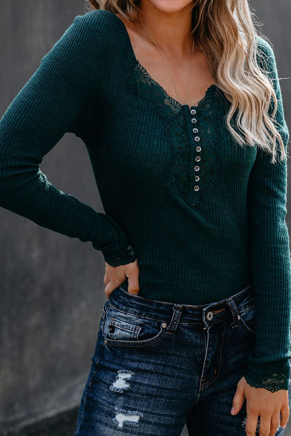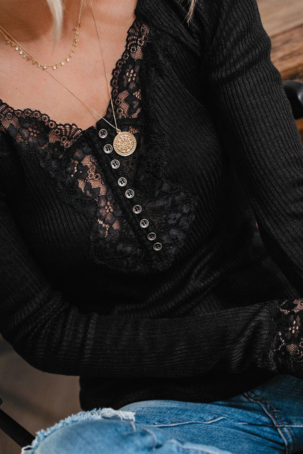 •Le patchwork de dentelle sur le devant rend le haut plus élégant