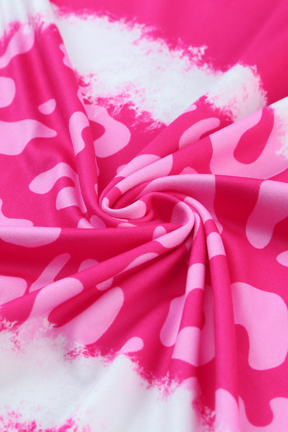 Robe t-shirt à col en V et blocs de couleurs léopard
