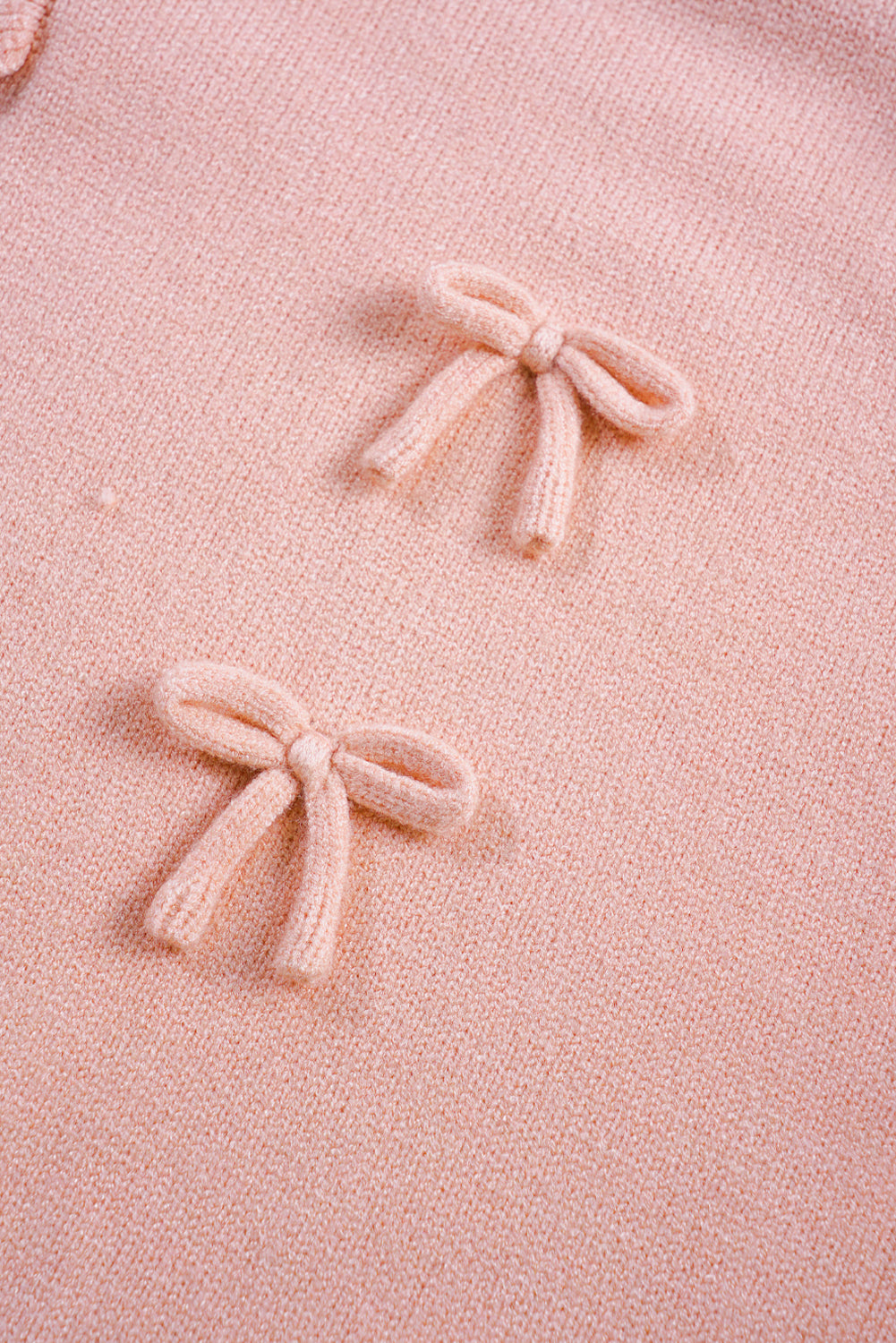 Pull à manches longues rose clair à volants et bordure côtelée avec nœud papillon