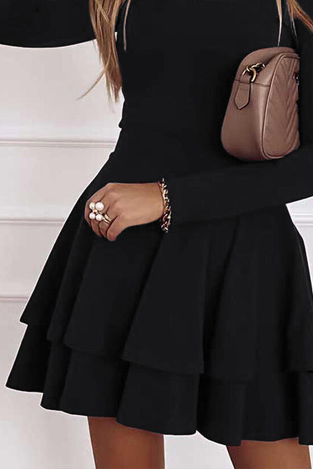 Robe courte trapèze à manches longues, col en V et volants étagés